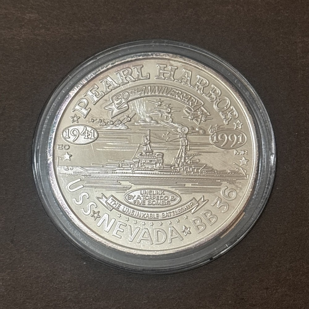 Pearl Harbor 50th Anniversary Medallion Silver Coin