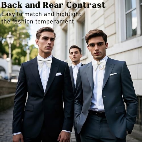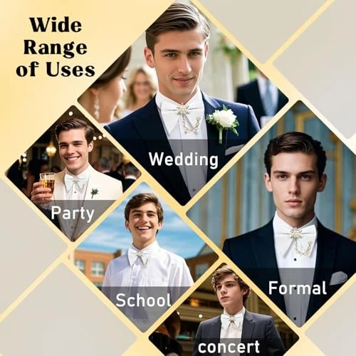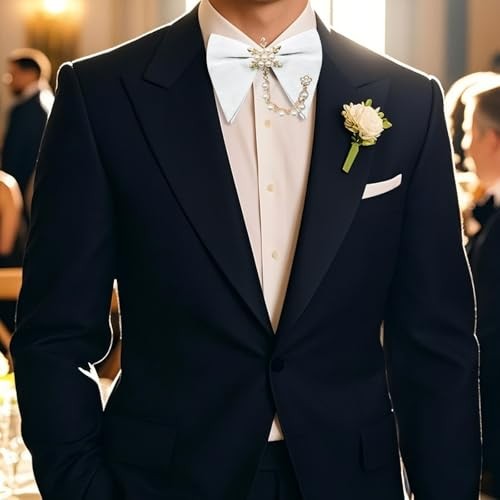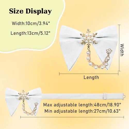 Pearl Oversized Bow Ties for Men, Adjustable Pre Tied Bowties Men White Chain