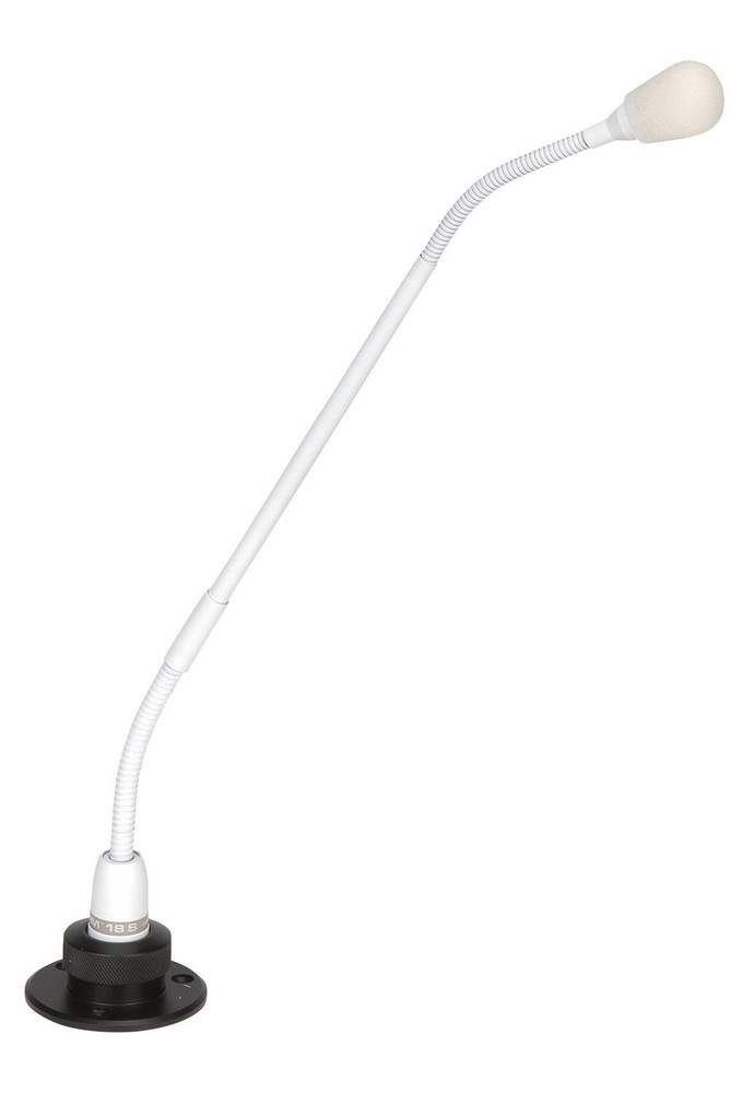Peavey PM 18S Podium Microphone Back-electret condenser element Cardioid pickup pattern Specially tailored smooth frequency response High gain before feedback Collet-type mounting flange with mechanical isolation system