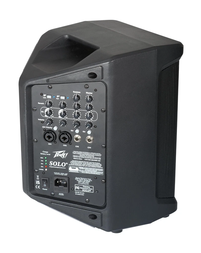 The Peavey Solo Portable Battery Powered PA System is an ideal solution for achieving professional-grade sound in a variety of settings. This versatile busking amp is perfect for street performances, public address announcing, portable tour groups, and playing your favorite instrument away from home. Easily tote your Solo to your favorite outdoor spaces where the Solo’s clean, clear sound can easily cut through the ambient noise, ensuring that your music or announcements are heard by everyone. Its Bluetooth capability allows you to stream music directly from your smartphone or tablet, providing a seamless and convenient audio experience. For musicians, the Solo is a game-changing busker amp. Its multiple channels and reverb feature allow you to connect your guitar or keyboard and perform with high-quality sound. Peavey’s exclusive Guitar Input selector changes the input type and EQ on the guitar channel to optimize it for the instrument. In addition, the Pevaey Kosmos feature can help brighten dead strings and enhance the clarity of performance. The rechargeable battery provides up to 10 hours of continuous use, so you can play without worrying about finding a power source. In a park setting, the Solo’s lightweight and portable design make it easy to carry and set up wherever you need it. Whether leading a guided tour or playing for crowd at a local community event, the Solo’s clear and robust sound ensures that your performance carries through, keeping your audience engaged and informed. Additionally, the channel priority feature allows announcements to automatically take priority over music channels, lowering the volume of the music long enough to talk over it – a stand-out feature for hosts, entertainers, and mobile DJ’s. The Solo’s rugged construction ensures it can withstand the rigors of outdoor use. Whether you’re a street performer, public speaker, tour guide, or musician, the Peavey Solo Portable Battery Powered PA System offers the perfect blend of portability, versatility, and high-quality sound, making it an indispensable tool for any on-the-go audio needs. HIT THE ROAD | This lightweight portable PA System is the perfect busking companion. At only 15 pounds, set off with confidence with the Peavey Solo ROCK OFF THE GRID | With a quickly rechargeable 10-hour battery life you can rock the Peavey Solo anywhere your heart desires HOOK UP ALL YOUR GEAR | The Solo includes Bluetooth connectivity, XLR (mic level) and 1/4" (line level) inputs, 4 channels, and an exclusive Guitar Input selector to tune the input EQ precisely to your instrument MAKE AN IMPACT | With 90 watts of power, trust the Solo to take your performance to the next level