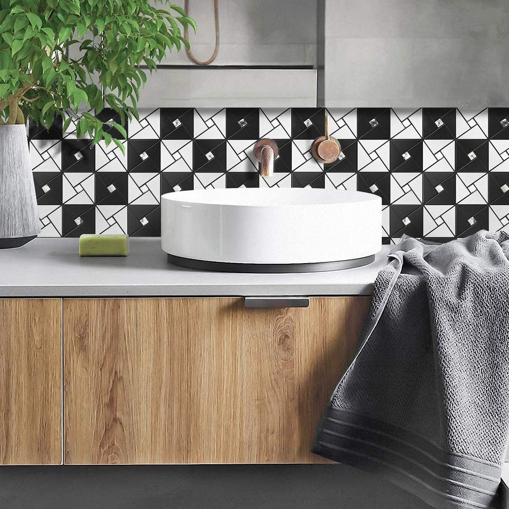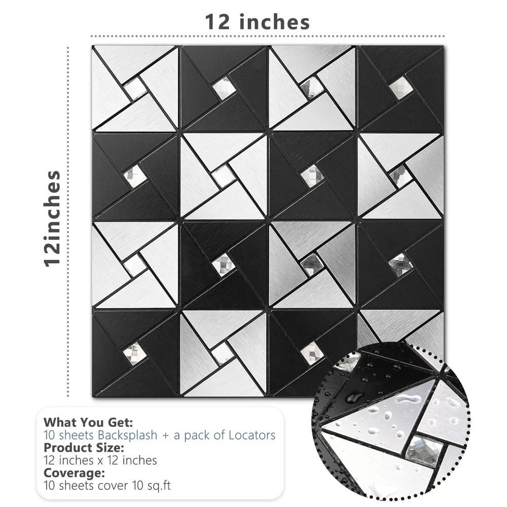 peel and stick backsplash kitchen backsplash tiles peel and stick miscasa wallpaper wall paper sticker pull and stick sink remodel staircase retro drawer craft project pu farmhouse ceramic wall tile peel and stick backsplash kitchen sheet stickers metal tiles ✿PINWHEEL PATTERN TILE:10 Sheets high quality black&silver peel and stick backsplash, 12"x12"x0.12" each,cover about 10 square feet. This square peel and stick backsplash makes installation easier and reduces cutting waste. Bright triangular cut metal and glass designs combine to make your overall home look brighter and more spacious. ✿HIGH QUALITY WALL TILE:Glass and Metal peel and stick tile made of aluminum and PVC composite laminates, safe and environmentally friendly, scratch resistant, high impact, colorfast. Thicker than regular vinyl peel stick backsplash tile for kitchen and more durable than plastic self-adhesive tile. ✿MOISTURE AND HEAT RESISTANT:The metal kitchen backsplash tiles peel and stick are durable, water, oil and heat resistant, keep walls free from splashes and oil, and can be wiped easily even with stains. ✿DIY DESIGN:Just peel and stick, no deformation, no peeling, no need for extra glue, you can easily cut the peel and stick backsplash for kitchen with a sharp cutting knife, and you are free to create a high-end look yourself. ✿WIDELY USED:This metal peel and stick tile backsplash can be used for walls in kitchens, bathrooms, stove backsplashes, bedroom wall backsplashes, laundry rooms, furniture decor, fireplace decor, washbasins, pet rooms, and more.