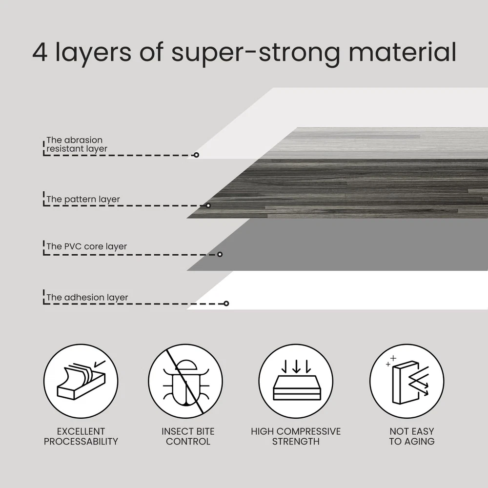 Why choose us? Powerful Feature - Strong self-adhesive and UV treatment make our PVC floor durable, good quality and longer service life. Also they are 100% waterproof, easy cleaning, stain & wear & scratch resistant, non-toxic and fire prevention. Easy DIY - Just peel and stick, on a flat floor or wall for installation, no tools, no experience, no glue. Everyone can do it. Dimention: Plank dimension: 6" width x 16.5" length x 0.07"thickness, pack of 34 pcs, covers 23.5 Sq.Ft. Made of high quality vinyl, durable, textured finish, low gloss, authentic wood look and feel. 100% Waterproof and Self-adhesive: peel and stick vinyl flooring planks use strong adhesive, which can hold the planks to flat ground firmly. Tiles are 100% waterproof with an IXPE integrated sound reduction underlayment that does not absorb water. Peel and Stick: Our vinyl flooring is easy to install, simply peel and stick the tiles to a flat and dry surface to give your home a brand-new look. Stylish: These vinyl floor tiles have the look and feel of natural wood grain. flooring tiles come in many natural wood-look colors so you’re sure to find the perfect match for any space. Application: Peel and stick floor tile for bathroom, bedroom, living room, kitchen, dining room, laundry room, basement, garage, RV floor, home decor, office, can be installed over most subfloor including concrete, vinyl laminate, plywood, ceramic tile