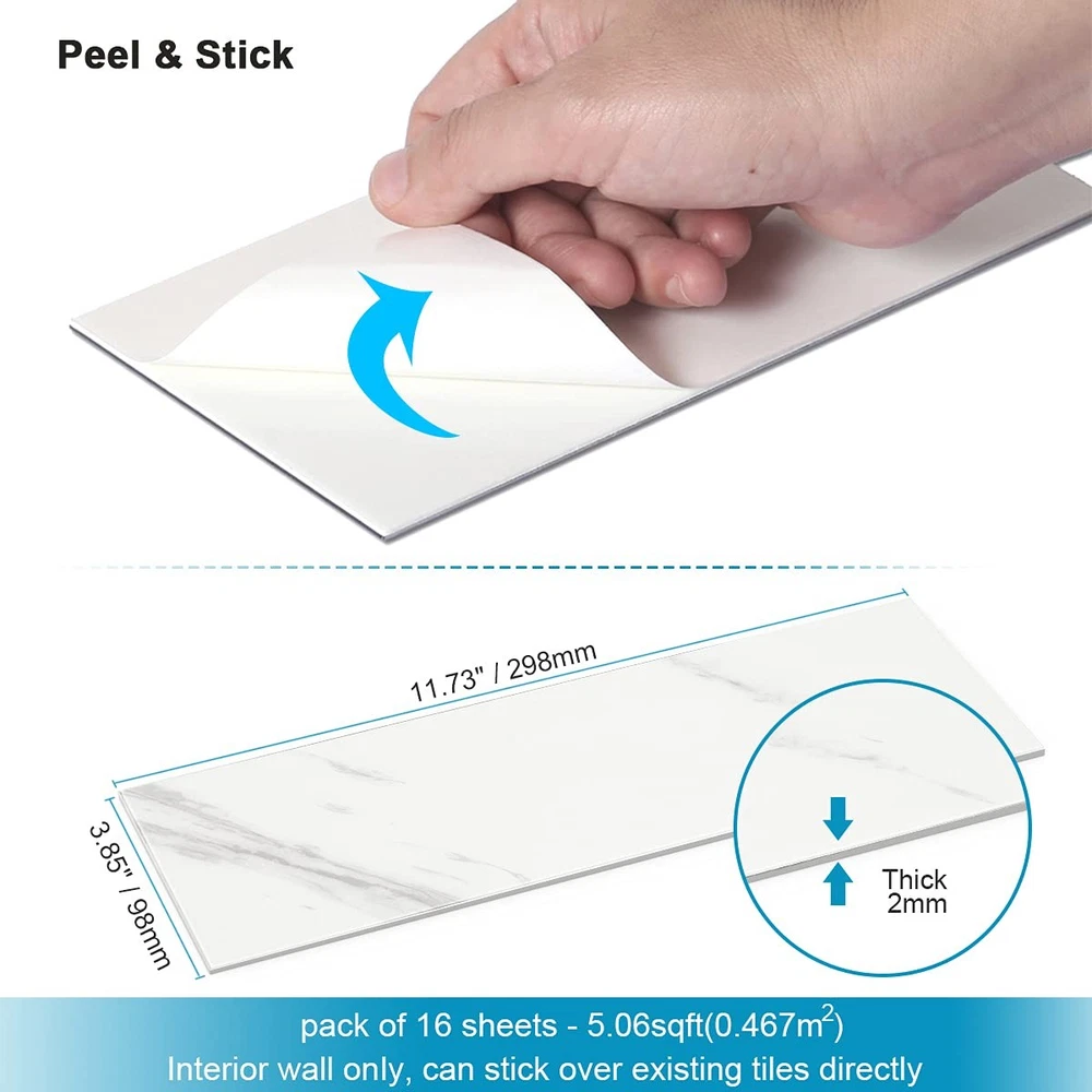 Peel and stick backsplash,Peel and stick tile,Backsplash tile for kitchen peel and stick,Peel and stick backsplash for kitchen,Wall panels,3d wall panel,Backsplash,Kitchen backsplash tiles peel and stick,3d wall panels peel and stick,Kitchen backsplash,Stick on backsplash for kitchen,Tile stickers,Peel and stick wall tiles,Backsplash peel and stick for kitchen wall,Peel and stick tile backsplash,Wall tiles peel and stick,Stick on tiles for backsplash kitchen,Peel and stick tiles,Subway tile peel and stick backsplash,Wall tiles,Tile sticker,Tile stickers peel and stick,Peel and stick subway tile,Kitchen backsplash peel and stick,Backsplash tile,Peel and stick tiles for walls,Wall sticker,Tile sticker,Tile stickers peel and stick,Peel and stick subway tile Application Marble:Look Tile Sticker:Peel and Stick Backsplash for bathroom kitchen,fireplace tile,laundry room,interior wall Features Stick Tiles for Bathroom Wall:Waterproof,heat resistant,can be used for wet area and kitchen backsplash.Easy to clean with water or damp cloth Easy DIY Subway Tile Backsplash:Size 3.85"x11.73"(98x298 mm),16 pcs per pack,5.06 sqf total,self adhesive backing,just peel and stick!No grout,No mess Light Weight and Thin Peel and Stick Tiles:Made of durable resin,just 2 mm thickness,easy to cut with sharp scissor or utility knife Strong Adhesive Marble Backsplash:Can be used over existing tiles or any smooth surfaces,such as glass,PVC,metal panels,wood,cement wall,painted wall