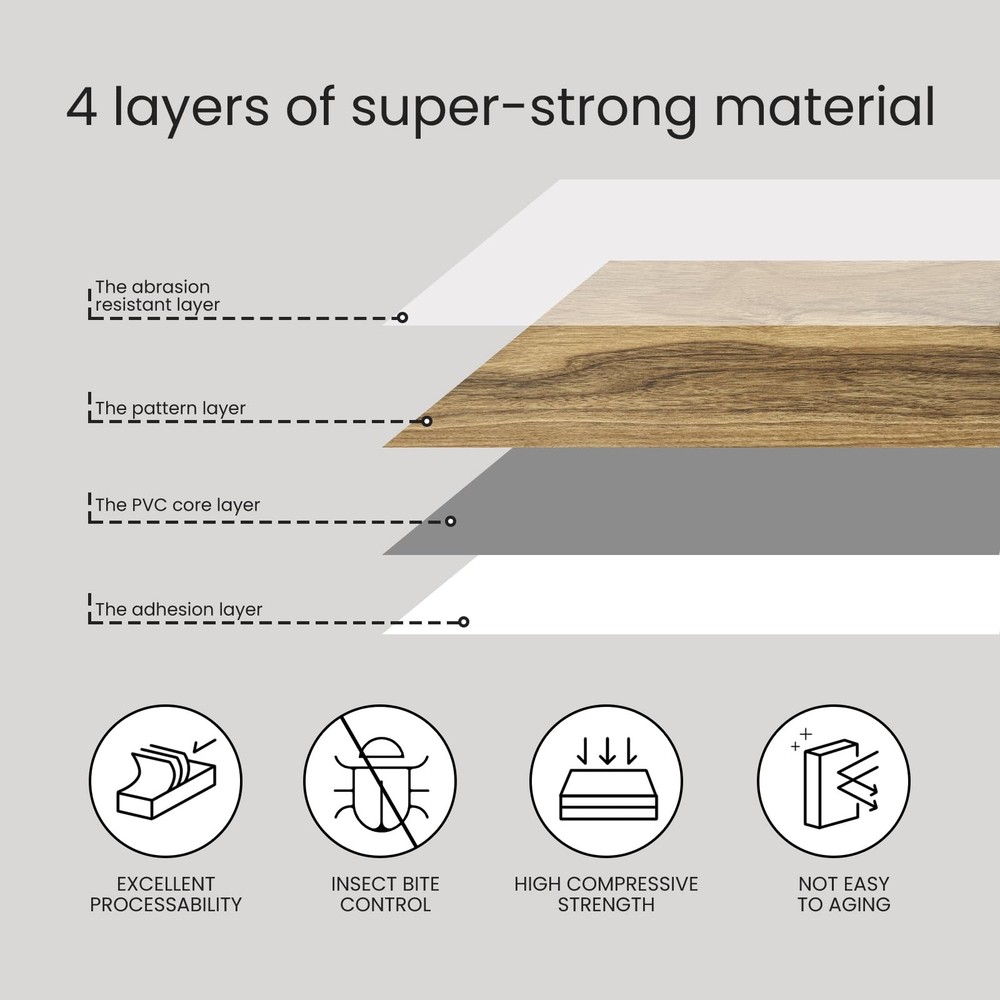 Why choose us? Powerful Feature - Strong self-adhesive and UV treatment make our PVC floor durable, good quality and longer service life. Also they are 100% waterproof, easy cleaning, stain & wear & scratch resistant, non-toxic and fire prevention. Easy DIY - Just peel and stick, on a flat floor or wall for installation, no tools, no experience, no glue. Everyone can do it. Dimention: Plank dimension: 6" width x 16.5" length x 0.07"thickness, pack of 34 pcs, covers 23.5 Sq.Ft. Made of high quality vinyl, durable, textured finish, low gloss, authentic wood look and feel. 100% Waterproof and Self-adhesive: peel and stick vinyl flooring planks use strong adhesive, which can hold the planks to flat ground firmly. Tiles are 100% waterproof with an IXPE integrated sound reduction underlayment that does not absorb water. Peel and Stick: Our vinyl flooring is easy to install, simply peel and stick the tiles to a flat and dry surface to give your home a brand-new look. Stylish: These vinyl floor tiles have the look and feel of natural wood grain. flooring tiles come in many natural wood-look colors so you’re sure to find the perfect match for any space. Application: Peel and stick floor tile for bathroom, bedroom, living room, kitchen, dining room, laundry room, basement, garage, RV floor, home decor, office, can be installed over most subfloor including concrete, vinyl laminate, plywood, ceramic tile