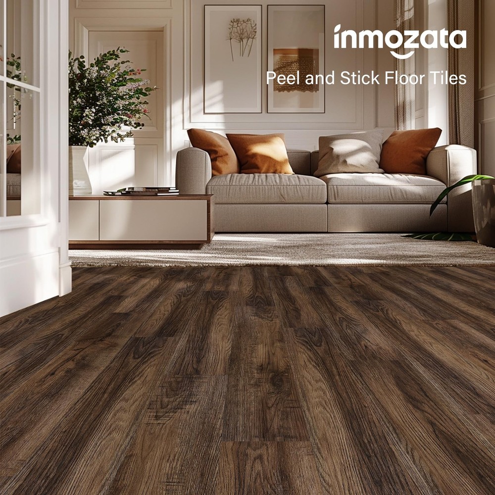 Peel and Stick Vinyl Flooring Tile, 36-Pack 54 Sq. Ft Self Adhesive Vinyl Plank Flooring Wood Grain Look Waterproof Floor Tile for Bedroom, Living Room, Kitchen, RV Made of Premium Quality Flexible PVC. Designed with natural wood decoration and is eye-catching--Adapt to different decoration styles. Thanks to the real wood grain look vinyl plank flooring, offering more durability and requiring less maintenance. Easy to install. Assemble quickly, thanks to its self-adhesive back. Installation of flooring tiles is straightforward. No cost to install. Everyone can do it. 【Sample of Peel and Stick Floor Tiles】 - We specially prepare 5 kinds of floor color samples for customers to buy, you can try to buy the sample to compare which color is more suitable and like, and you can see whether our material is good before buying the floor set! 【High Quality Material】 - Peel and stick vinyl plank flooring Tiles are crafted with the high quality vinyl, ensuring durability and longevity. Strong adhesign, with rigid core for stable and strong performance, stylish and classical surface designs keep good feeling. 【Easy to Install】 - Peel and stick down to practically any surface, make your home improvement easier and save your time & money. Great for Living Room wall Bathroom Kitchen RV Camper any room decoration. 【Perfect performance】 - peel and stick vinyl plank flooring Tiles boasting a rigid surface with a robust core and 100% waterproof. The wear, scratch, and abrasion-resistant properties ensure longevity, while the high strength guarantees no expansion and stability. 【The ideal Choice for Creating a Cozy Atmosphere in Your Room】 - waterproof vinyl plank flooring tiles not only add elegance to your space but also offer a warmer, more comfortable surface to walk on compared to traditional tiles.