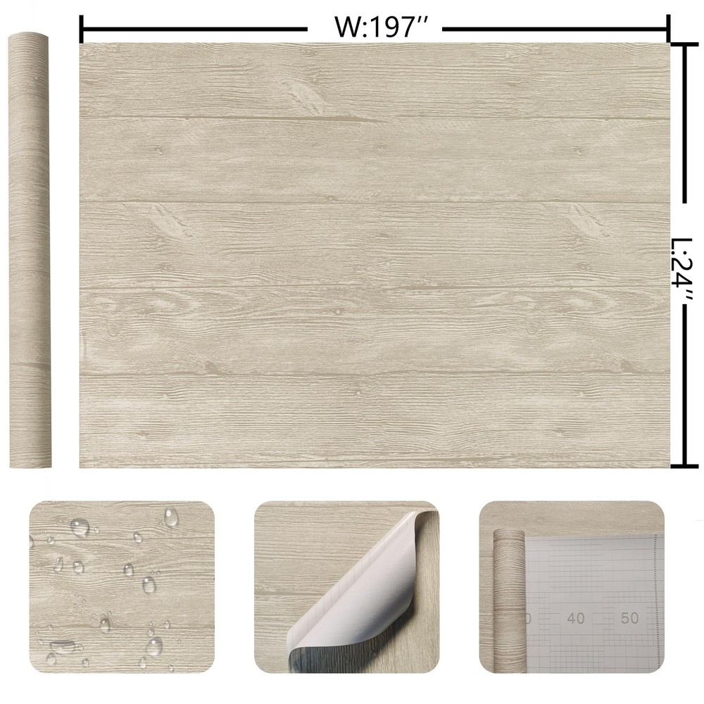 Specification Name: Wood Grain Vinyl Floor Sticker Material: PVC Color: beige Thickness: 0.3mm Pattern: wood grain pattern Size: 24x197 inches (WxL) Coverage area: 32.2 square feet/roll Features: self-adhesive, removable, waterproof, wear-resistant, easy to install, easy to clean Installation: just peel and stick Waterproof and Wear Resistant Vinyl Floor Covering: floor tiles are made using a multi-layer pressing process that is wear resistant, waterproof and easy to clean, simply clean as you would a normal floor. Peel and Stick Floor Tiles: Floor tiles floor rolls are easy to install, no special tools or adhesives needed, just peel off the backing and install on a flat and smooth surface. Large Vinyl Flooring Roll: The wood vinyl floor tile sticker measures 197 inches in length and 24 inches in width, each roll of floor sticker covers 32.2 square feet, which greatly improves installation efficiency by reducing the amount of material, seam requirements, and installation time when compared to traditional floor tiles and strips. Realistic Wood Pattern: The vinyl floor sticker has a realistic wood texture design, great for floor surfaces in bedrooms, living rooms, bedrooms, kitchens, lounges, RV's, offices, break rooms and more. About the Product: As this floor sticker is thin, the thickness is only 0.3mm, but we add a special wear-resistant layer to its surface, it can be used for a long time on flat and smooth surfaces, please consider its thickness factor before you buy it.