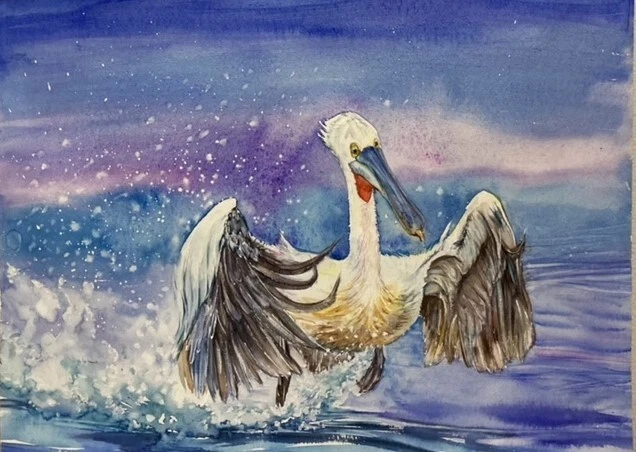 Bird Brown Pelican Ocean . Watercolor original painting . Cold pressed acid - free 100 % cotton watercolor paper. Signed on a front and a back by artist Liz Altin . Size 11x14.5 inches . The painting comes is quality zip lock clear disposable plastic bag , strong backing board and is well protected.