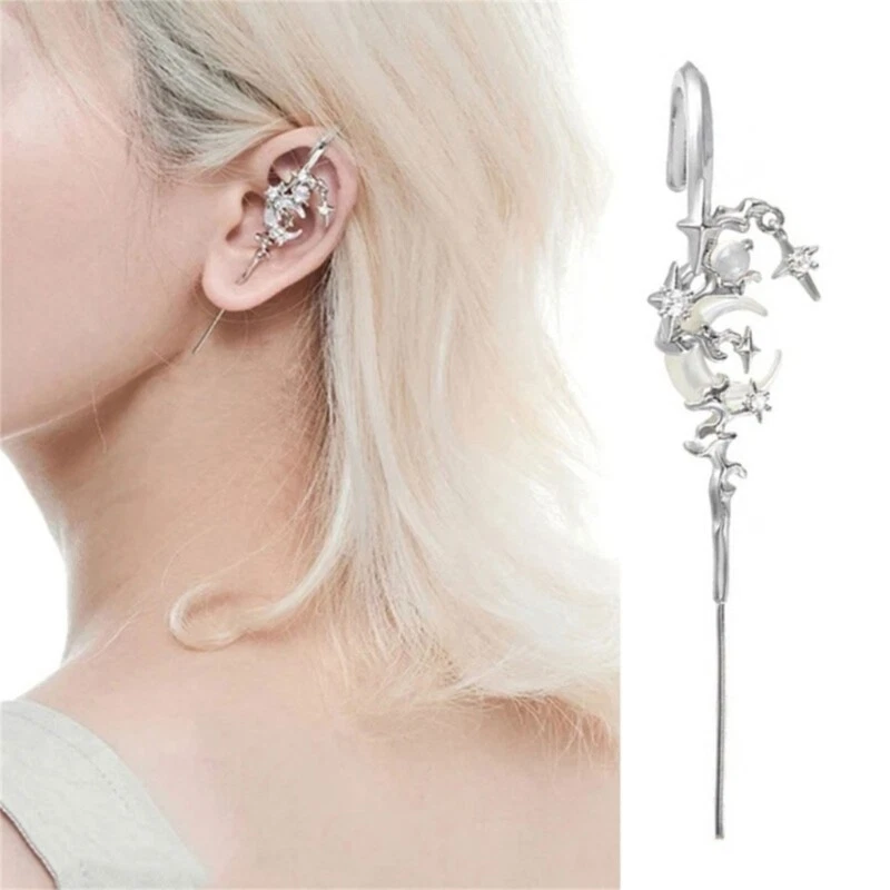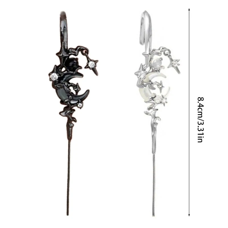 Features: Elevates your styles with the enchanting piercing earrings, a blend of punk rock and gothic elegances that promises to turn heads. Crafted from alloy, these earrings feature a unique star and moon designs, for a touch of sophisticated contrast. Suitable for fashion forward women who dare to expressing their individuality, these ear cuffs offer a statement item for those with a penchant for the mystical and the garde. Suitable for any occasion, from casual outings to event, these earrings add sparkles to your ensembles, whether you're attending a party or simply evening out. Each pair comes beautifully packaged in exquisite box, making the earrings not just a own treasure but also a for someone special who loves to like the above. Specifications: Texture: Alloy Length: Approx. 3.94inch(10cm) Package Includes: 2x Earrings note: Please allow 1-2cm errors due to manual measurement. Due to the differences between different monitors, the picture may not reflect the actual color from the item.