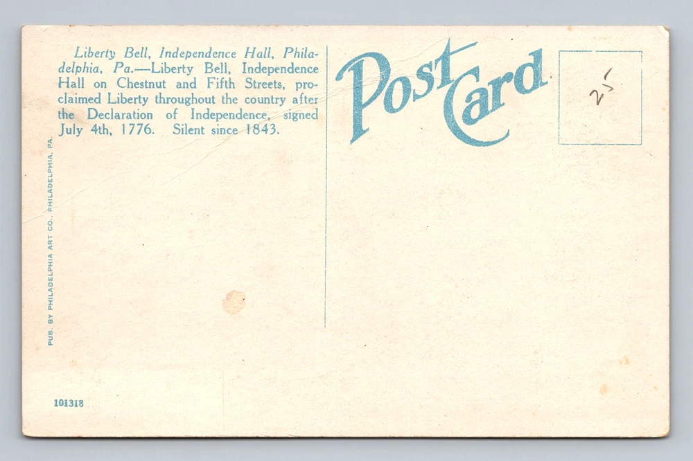 Pennsylvania PA Philadelphia Liberty Bell Independece Hall Vintage Postcard PC