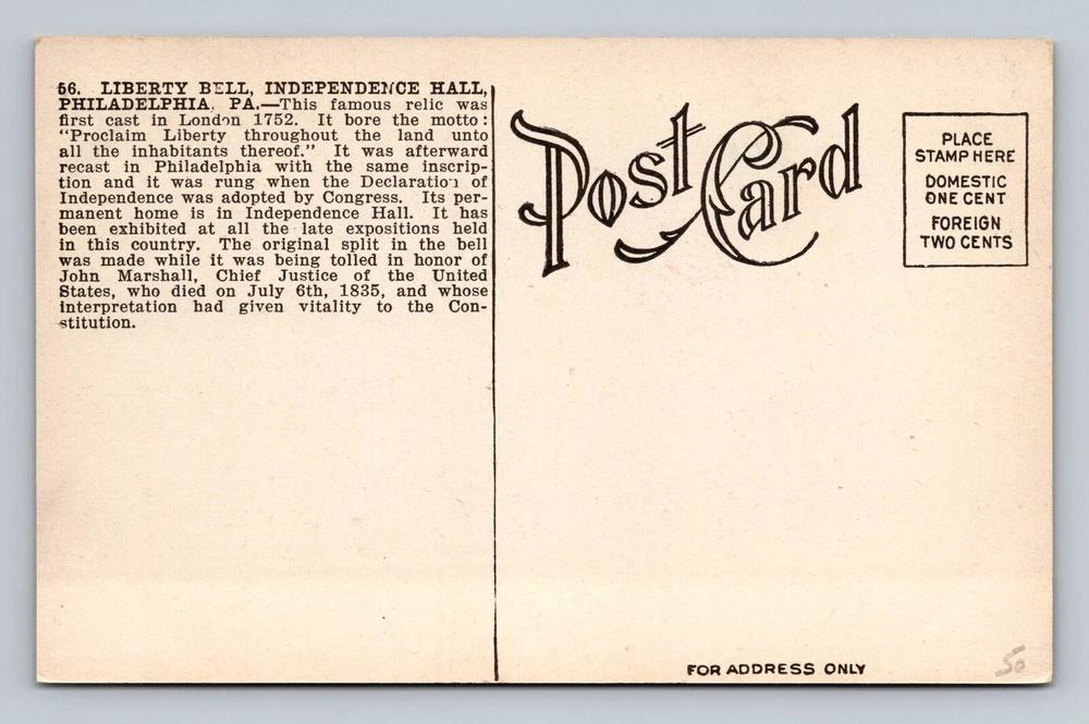 Pennsylvania PA Philadelphia Liberty Bell Independence Hall Vintage Postcard PC