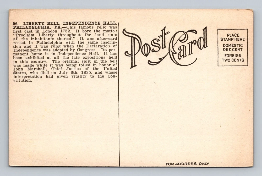 Pennsylvania PA Philadelphia Liberty Bell Independence Hall Vintage Postcard PC