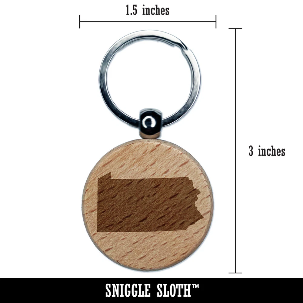 Pennsylvania State Silhouette Engraved Wood Round Keychain Tag Charm