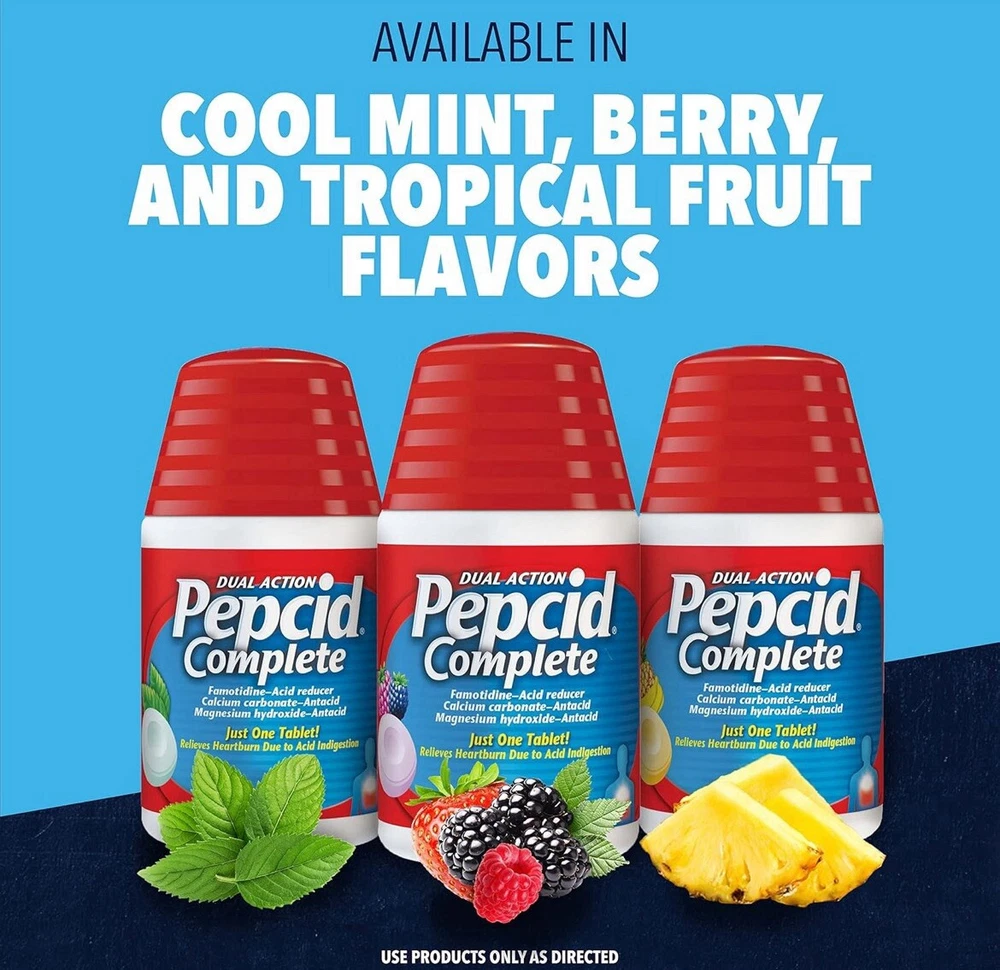 Pepcid Complete Acid Reducer and Antacid with Berry Flavor - 50 Tablets chewable tablets Dual Action