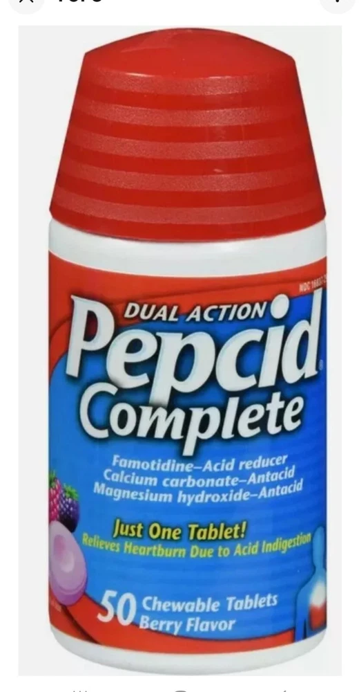 Pepcid Complete Dual Action Acid Reducer Chewable Tablets Berry 50 Ct Ex:12/26.