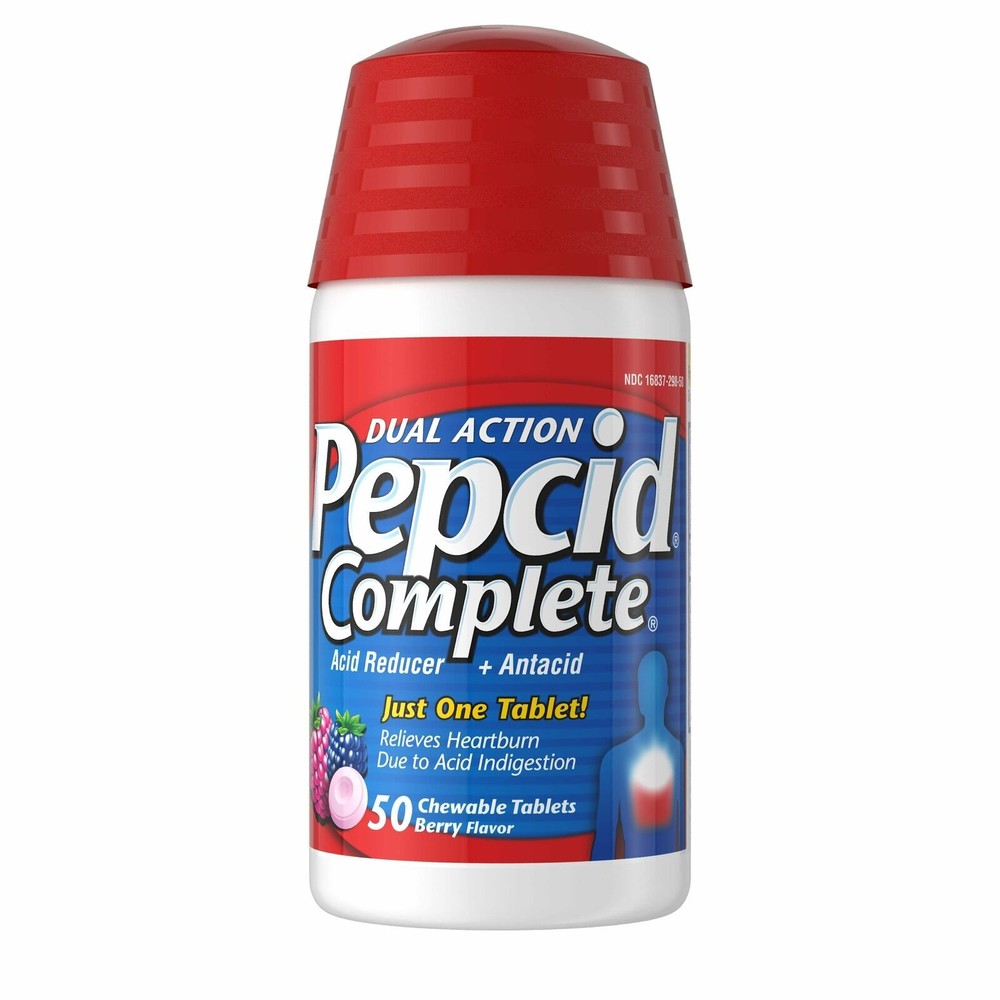 Pepcid Complete Dual Action Acid Reducer + Antacid Chewable Tablets Berry , 50 CT (Pack of 3) Reduces and neutralizes acid