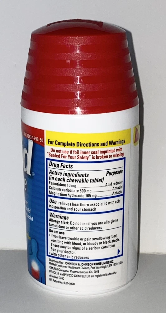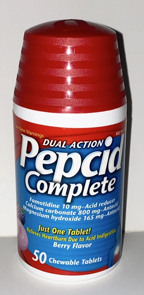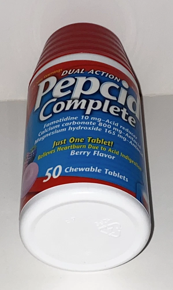 Pepcid Dual Action Complete Acid Reducer & Antacid Berry Flavor Quantity: 1 Bottle - 50 Chewable Tablets Expiration Date: 10/2026 New! You will receive exact item as in pictures. See all pictures. From the #1 doctor recommended OTC acid reducer brand, PEPCID COMPLETE is a chewable tablet that provides dual action heartburn relief that works fast and lasts. It combines an antacid that starts neutralizing acid in seconds with an H2 blocker, famotidine, that helps control acid all day or all night. The PEPCID brand: Has provided safe & effective heartburn relief for 35 years when used as directed Delivers clinically proven, heartburn relief you can trust Is the #1 selling H2 brand for preventing and treating heartburn with one pill Is #1 doctor recommended OTC acid reducer brand Quickly relieve heartburn and reduce acid associated with acid indigestion and sour stomach with Pepcid Complete Acid Reducer + Antacid Chewable Tablets. These berry flavored heartburn relief antacid chews combine a fast-working antacid and long-lasting acid reducer to help control acid all day or all night. Formulated with 10 mg of the acid reducer famotidine, 800 mg of the antacid calcium carbonate and 165 mg of the antacid magnesium hydroxide per tablet, this heartburn reliever helps to neutralize and control acid. The dual-action formula starts working in seconds and lasts longer than Tums. Whether at brunch or a new food spot, use Pepcid Complete Berry Flavor Chewable Tablets for fast-acting heartburn relief so you don't have to worry about hurting now or hurting later. Berry flavored Pepcid Complete Acid Reducer + Antacid Chewable Tablets for heartburn relief Acid reducer + antacid chews help quickly relieve heartburn due to acid indigestion & sour stomach 1 tablet controls acid all day or night, based on results of 9-hr daytime & 12-hr nighttime studies Each heartburn relief chew contains 10 mg of famotidine, an ingredient that acts as an acid reducer Each tablet also contains 800 mg calcium carbonate & 165 mg magnesium hydroxide, both antacids Dual-action formula starts neutralizing acid in seconds & provides heartburn relief that lasts Chewable berry-flavored acid reducer and antacid tablets help provide immediate heartburn relief Keep a bottle at home and in the office to relieve heartburn whenever it strikes Fast Shipping! It will be shipped within same business day or next business day. 30-Day returns accepted! Buyer pays for return shipping. Item must be in same new condition as buyer received. Serious buyers only please. If you have any questions, please message and ask before buying. From a pet-free and smoke-free home. Buy With Complete Confidence! 100% Customer Satisfaction! Thanks for Looking! :)