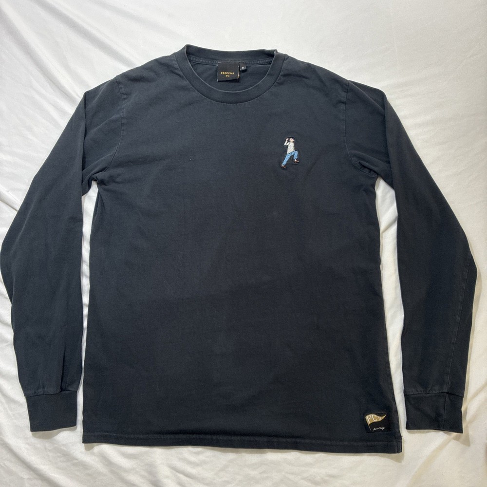 Percival T-shirt Long Sleeve Large Organic Cotton Embroidered Black Classic