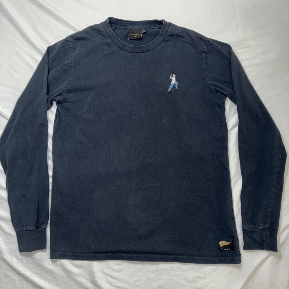 Country of Origin:PortugalVintage:NoPersonalise:NoMaterial:CottonSleeve Length:Long SleeveTheme:ClassicGarment Care:Machine WashableBrand:PercivalNeckline:Crew NeckSize:LType:T-ShirtColor:BlackAccents:EmbroideredSize Type:RegularColour:WhiteFit:RegularDepartment:MenHandmade:No