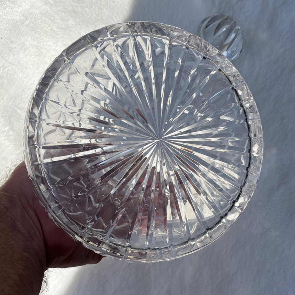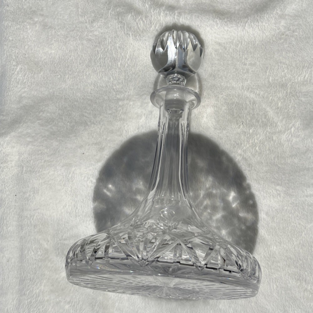 Priced to sell. This is an immaculate clear cut crystal decanter. Brand unknown. Very high quality. This decanter is about 11-inches tall and the base is near 8-inches wide.