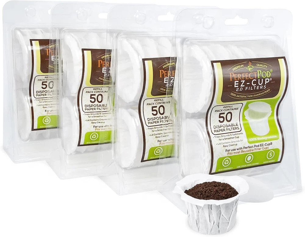 Store New Arrivals Add to Favorite View Feedback Contact Perfect Pod Ez-Cup Disposable Paper Filters with Patented Lid Design for Reusable Coffee Pods 4-Pack (200 Filters) Description Item model number K85753-4 Unit Count 50.0 Count Brand PERFECT POD Material Paper Country of Origin USA Item Weight 9.6 ounces Shape Basket Manufacturer Perfect Pod Is Discontinued By Manufacturer No Product Dimensions 1.46 x 1.6 x 1.25 inches Number of Pieces 4 Experience a hassle-free clean-up process with our Perfect Pod EZ-Cup Paper Filters. The innovative design comes with a lid, allowing you to simply lift and dispose of used filters, making your coffee brewing experience as easy as it should be. Committed to sustainability, we've crafted our filters from 100% biodegradable papers. With our unique, burst-resistant design - the paper filter with a patented lid. No coffee grounds will ruin your perfect brew. Embrace the economical choice - save up to 80% compared to pre-filled single-serve capsules without compromising on taste or quality. Experience a hassle-free clean-up process with our Perfect Pod EZ-Cup Paper Filters. The innovative design comes with a lid, allowing you to simply lift and dispose of used filters, making your coffee brewing experience as easy as it should be. Enjoy endless possibilities with the Perfect Pod EZ-Cup Paper Filters - explore all your favorite coffee blends without having to worry about compatibility issues. Make every cup of coffee as special and unique as you are, no matter what Keurig machine you have. Versatile- Designed for compatibility, the filters work with Perfect Pod EZ-Cup and other reusable K-cup coffee pod systems. (Sold Separately) The high-quality paper used in our filters is strong and sturdy, ensuring that they won't tear during use. Our Perfect Pod EZ-Cup Paper Filters are crafted to ensure optimal flow for the perfect brew. The filters allow the full flavor of your coffee to come through while keeping grounds out of your cup. Product Description Perfect Pods' EZ-Cup Paper Filters are specially designed to ensure the best possible, hassle-free cup of coffee from your single-serve brewer. EZ-Cup Paper Filters trap unwanted sediment and much of the coffee's oils, (which can make coffee bitter) delivering a smoother, more balanced cup of coffee. The Art of Coffee Brewing, Made Perfect Perfect Pod delivers the original variety of options for both the connoisseur and the cost-conscious coffee enthusiast, keeping the health of the environment and the taste in your cup firmly in mind. Compatibility Works with virtually any standard reusable K-Cup filters. Special Design With Lid Ez-Cup Paper Filters feature a strong “burst resistant” design and lid, which assures the strength and integrity of the filters. And, because the paper filters are 100% biodegrade, cleanup is a breeze. After brewing, just toss or compost them - no mess to deal with. Why Use Reusable Filter Cups? Reduce Waste Our EZ-Cup Paper Filters are disposable. By using EZ-Cup Paper Filters, you will no longer be contributing to the 10 billion used disposable K-Cups that end up in landfills year after year. Disposable paper filters are packaged in #1 clear, recyclable plastic (storage container). Save Money Using a refillable K-cup coffee filter saves the average user up to 80% over pre-filled, single serve K-Cups! The small amount of coffee in a pre-filled K-Cup averages out to 40 dollars a pound, while home ground coffee used in a refillable EZ-Cup with Paper Filters averages out to around 10 dollars a pound. Enjoy Better Coffee If a great cup of coffee made from freshly roasted, high-quality beans is your goal, our reusable filters are for you! Pre-filled coffee K-Cups tend to have slightly older, more stale grounds- resulting in a sub-par cup of coffee. Using the EZ-Cup with Paper Filters allows you to choose the fresh coffee blends you like best. ABOUT US We offer the best prices around on high quality products. Our E-store includes media such as books, movies, music and games while offering electronics, toys, sporting apparel, clothing, tools, general home, garden items and more. SHIPPING We are always working hard to ensure your package arrives as soon as possible. Please understand that some factors like weather, high postal traffic, and the performance of shipping companies are outside of our control. We offer free shipping to the lower 48 states and ship within 2 business days of payment, usually sooner. We do not accept P.O. Boxes. Please provide a physical address. RETURNS We offer a 30-Day Return Policy on items which you are not completely satisfied with. You have the option for a full-refund or an exchange of the item. No returns are available on items shipped outside of the USA. PAYMENT We accept PayPal. CONTACT US This page content is yet to come Please ad us to your favorite seller and visit again later Thank You CUSTOMER SATISFACTION We try our very best to make sure every customer is completely satisfied. If there's a problem, message us! We're happy to help.