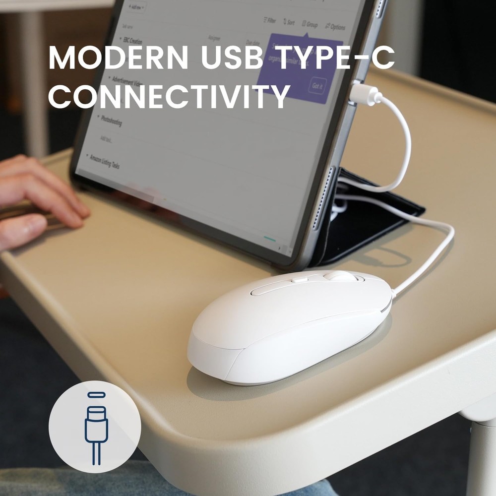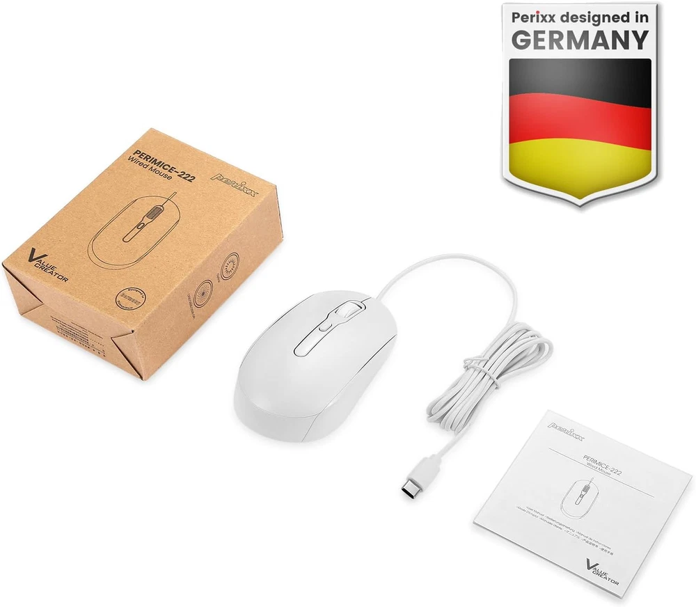 Perixx PERIMICE-222CW USB Type C Wired Optical Mouse, 1200/1600/2000 DPI, Long 5.9 Ft Cable, Compatible with Tablets, Laptops, and PCs, White Product Details Product Dimensions: 4.45 x 2.48 x 0.04 inches Item Weight: 2.89 ounces Item model number: 11941 Manufacturer: Perixx Country of Origin: China Brand: Perixx Connectivity Technology: USB Special Feature: Portable, Lightweight, Soundless Movement Detection Technology: Optical Number of Buttons: 4 MODERN CONNECTIVITY FOR ALL DEVICES: Easily connect to the latest tablets, laptops, and PCs with [USB Type-C] for seamless integration and reliable performance across all your devices. HASSLE-FREE SETUP AND EXTENDED REACH: Enjoy a simple plug-and-play experience with a [5.9 Ft long cord] that provides flexibility and freedom of movement, compatible with Windows 7/8/10/11 systems. WORK QUIETLY ANYWHERE: Experience distraction-free productivity with [Silent Click] technology, ideal for shared spaces or travel. Perfect for maintaining focus in any environment. ERGONOMIC DESIGN FOR ALL USERS: Designed for both right and left-handed users, this mouse offers [Neutral Design] for personalized comfort. Adjust the primary button settings for optimal workflow. ENHANCED PRECISION AND CONTROL: Achieve smooth tracking and pinpoint accuracy with adjustable [1200/1600/2000 DPI]. Features three responsive buttons and a compact size (113 x 63 x 37 mm) for effortless navigation.