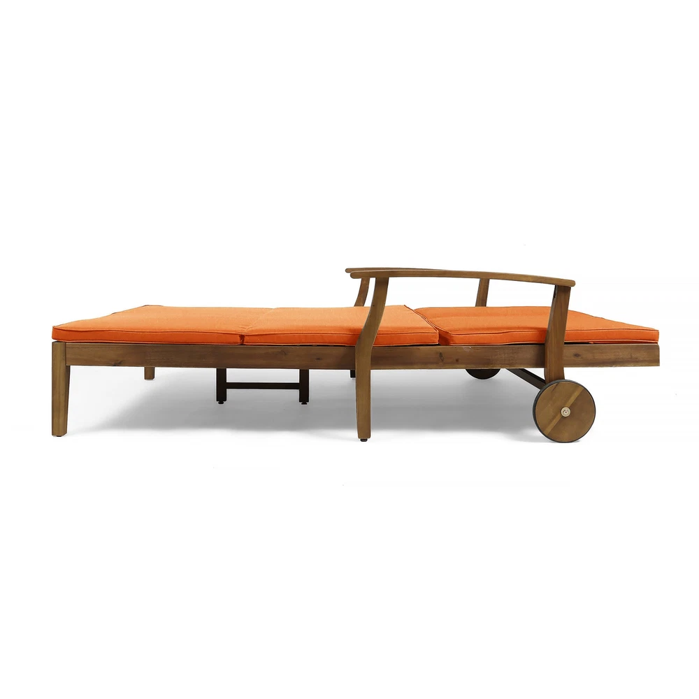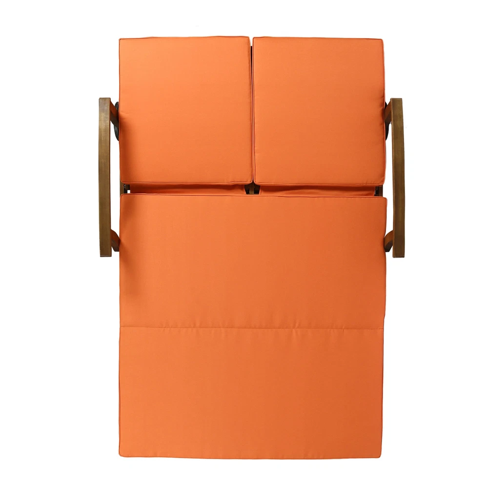 Specifications Place of Origin #originPlace# Main Color Teak Main Material Acacia Wood Dangerous Goods #dangerFlag# Dimensions & Weights Assembled Length (in.) 79.00 Assembled Width (in.) 55.00 Assembled Height (in.) 22.00 Weight (lbs) 88.18 Product Features Invite your favorite person to relax in style on this dual chaise lounger for porch, patio, or yard. Item Dimensions 79.25 x 56.25 x 37.25 inches FULLY ADJUSTABLE - Both sides can be adjusted independently of one another according to each user's own personal preference. MODERN APPEAL - Timeless details such as an exposed acacia wood frame in teak, chic slats, carved accents, and a unique cross-back design make the Perla an unforgettable complement in any outdoor living space. A POOLSIDE MUST-HAVE - Quick-drying cushioning and frame make this a natural choice for one looking to relax on their poolside deck. Description