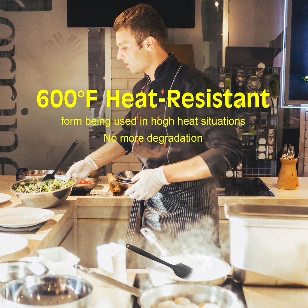 [ Quality] 100% made of food grade silicone rubber spatula set.Contains high-quality steel small metal spatula, strong and durable. tasteless kitchen safe. Smooth and flexible thin edge, no scratches, will not damage your pots and pans . [Seamless One-Piece Design] With easy-to-clean seamless one-piece design compact and sturdy, smooth surface cooking utensils for nonstick cookware, soft textured silicone grip better grip, than silicone spatula removable head more durable, hand wash or dishwasher.perfect for baking, cooking and mix etc. [Heat Resistant Utensils] Turn up the heat in your kitchen! with a solid stainless steel core and wrapped in kitchen silicone scraper that is heat-resistant up to 600° safe for nonstick spatulas for nonstick cookware. No melting, no warping, no worries! Quality Life. [Variety Pack] Our silicone cooking utensils set is versatile utensils ,Each package includes 1 jar spatula silicone long handle , 1 grill spatula brush,1 Large Spoon Spatula, 1 Small Spoon Spatula, 1 Large Spatula, and 1 Small Spatula.Versatile enough for use in frying pans, mixing bowls, sauce pots, grill, bottles, and more. [Permanent Warranty Service ] Our team will provide the longest after-sales service, If you have any questions about your silicone spatula set, you are ensured for "PERMANENT WARRANTY, GUARANTEED" without any questions asked.So you can enjoy your purchase with confidence knowing our service lasts forever.