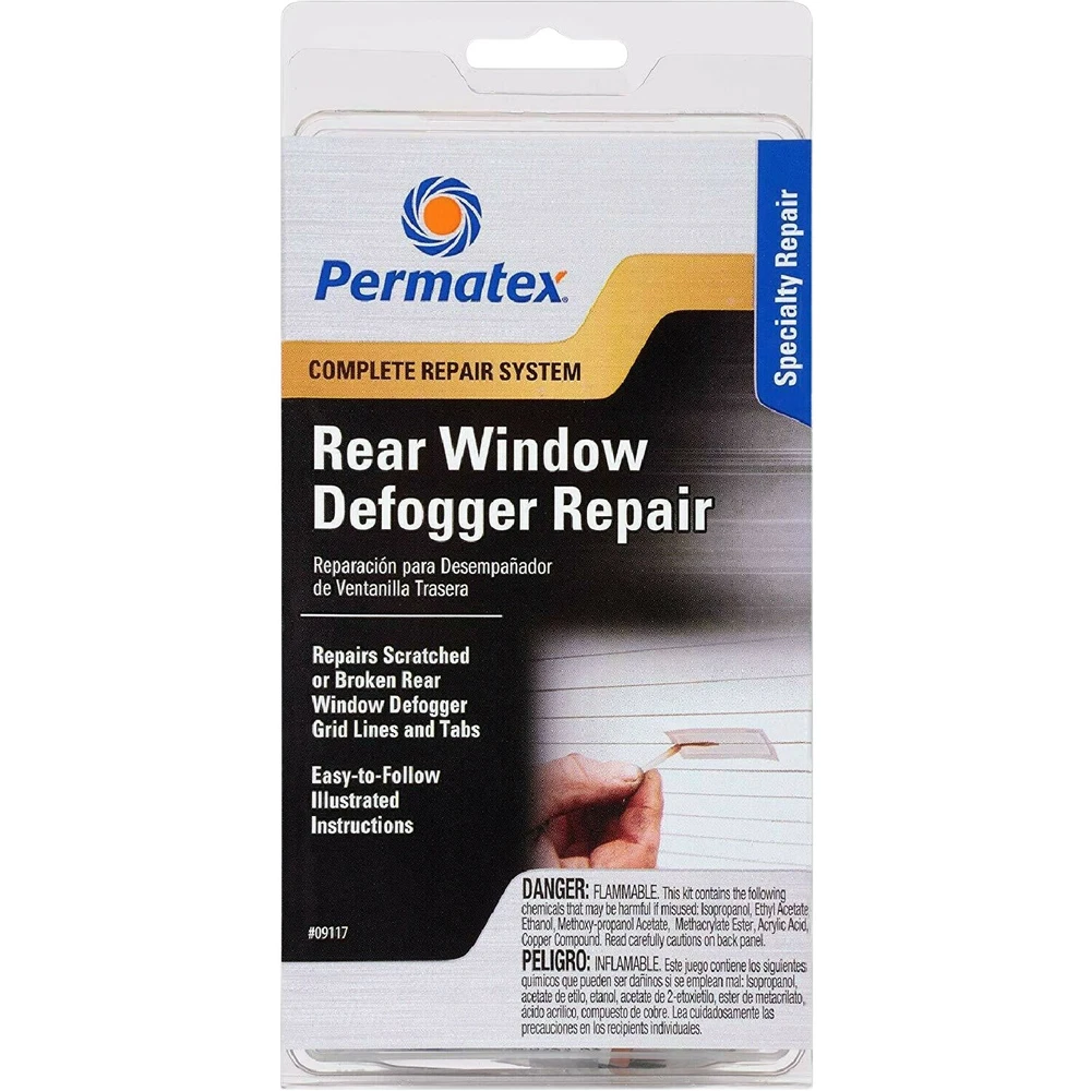Permatex 09117 Rear Window Defogger Repair Kit PRODUCT DESCRIPTION Permatex Window Defogger Repair Kit contains everything required for making professional-quality repairs in just minutes. Includes state-of-the-art components and easy-to-follow instructions with photographs. Provides a low-cost, high-quality repair for damaged rear window defogger grids and tabs.