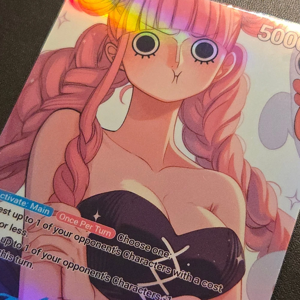 Holographic Foil Perona Leader Card One Piece Card Game Proxies Set: OP06-021 Variant: X Card size: Standard (2.5 x 3.5 inches) Materials: Glossy Vinyl, One Piece Playing Card --------------------------------------------------------------------------- Are you a cultured and distinguished gentleman that enjoys waifus? If so, then you are in the right place! Each card is handmade, and made to order. I have experimented and choose the best materials to replicate the quality of the original card. Each card is laminated with protective vinyl (waterproof), and applied on an official One Piece Card Game leader card. I inspected every card before shipping to ensure each card is up to standard. I love each card I create and I hope you do too 💖. View my store for see all the proxies! Please contact me for any questions or concerns. Thank you! --------------------------------------------------------------------------- This is a fan-made custom card that is a parody of the actual card game. AI and Photoshop was used in the help of this art.