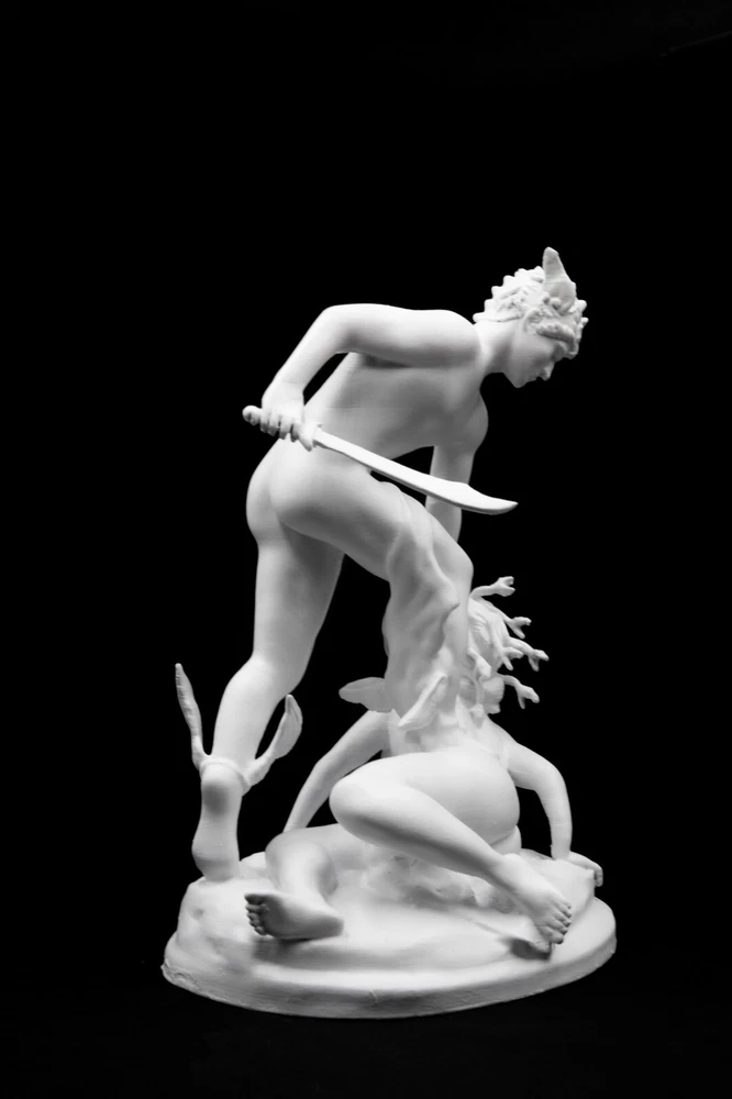 🔹 This 3D printed copy statue renders the scene of Perseus beheading the head of Medusa. From the Hesperides he received a knapsack to safely contain Medusa's head. Zeus gave him an adamantine sword and Hades's helm of darkness to hide. Hermes lent Perseus winged sandals to fly, and Athena gave him a polished shield. Perseus then proceeded to the Gorgons' cave. 🌟Original Sculpture Details🌟 Date: 1876/1903 Period: Neoclassical Artist: Laurent Marqueste 🌟Material & Process🌟 This product is crafted using high-quality PLA with a 3D printer, then meticulously hand-painted and varnished to perfection. The item you will receive is exactly as shown in the photo. For custom sizes and colors, please contact us. 🌟Post-3D Printing Process🌟 To ensure a smooth and flawless finish, each piece undergoes several steps after 3D printing. Initially, we carefully sand the object to eliminate any rough surfaces. Next, we apply a primer to prepare it for painting. The piece is then hand-painted with great attention to detail, and finally, we varnish it to ensure the paint remains vibrant and long-lasting. 📌 Our products are lightweight due to the 3D printing process. The weight may be surprising when held, as it cannot be accurately judged by appearance alone. Generally, they weigh under 500 grams. Despite their lightness, our 3D printed items are more durable and resistant to impact. If you prefer a heavier product, we can add weight upon request, though this will incur an additional shipping fee. Please contact us for more details.