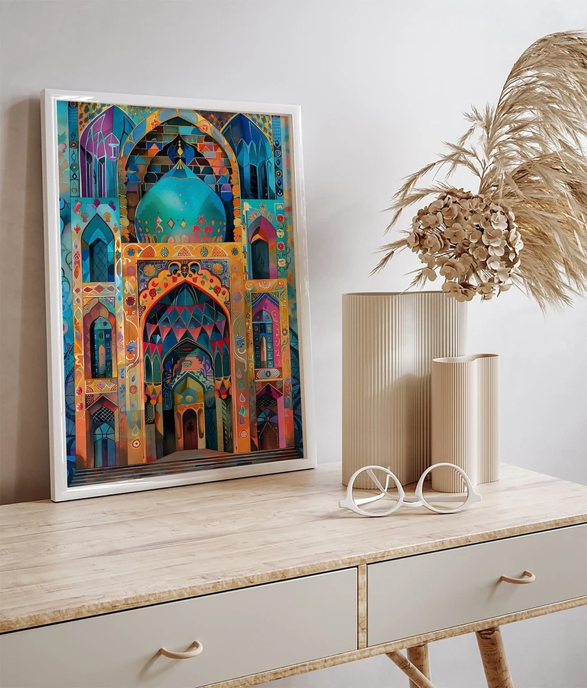 Persian Arch Turkish Monument Painting Living Room Decor Persian Palace Travel Poster Instant Mughal Wall Art Material: Premium luster photo paper Print type: Inkjet printing One side printed + The finish provides the highest possible resolution and color saturation + Lasts up to 200 years in color and 400 years in black-and-white + Printed on high-quality resin-coated photo base paper medium + Posters can be hung with double-sided tape, tacks, or framed + Hand washing with a gentle cry cloth is recommended for extended durability I will hand select the best choice of paper for your chosen design to ensure top quality results for a beautiful, bright and luxurious print. All prints are sealed in cellophane slips for protection during transportation, and are shipped in a protective cardboard envelope.