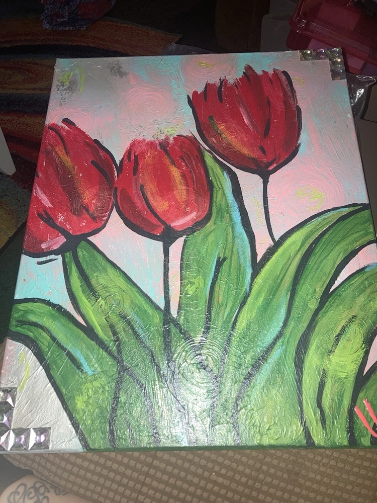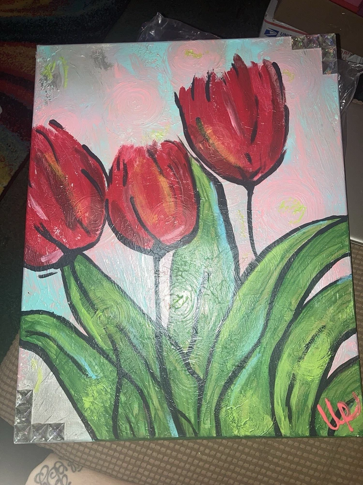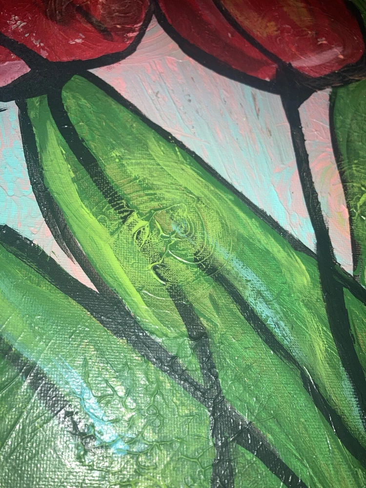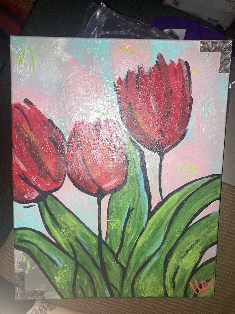 This beautiful painting is a one-of-a-kind creation by artist Jessi Upchurch. The abstract tulip design on canvas is a stunning piece that will add a touch of art to any room. The painting is made with oil painting production technique and is an original piece, not a licensed reproduction. The medium-sized painting features a vibrant array of colors and is perfect for those who appreciate abstract art. The flower subject adds a touch of nature to the piece, making it a great addition to any art collection. This painting is perfect for art enthusiasts who are looking for a unique and beautiful piece to display in their home.