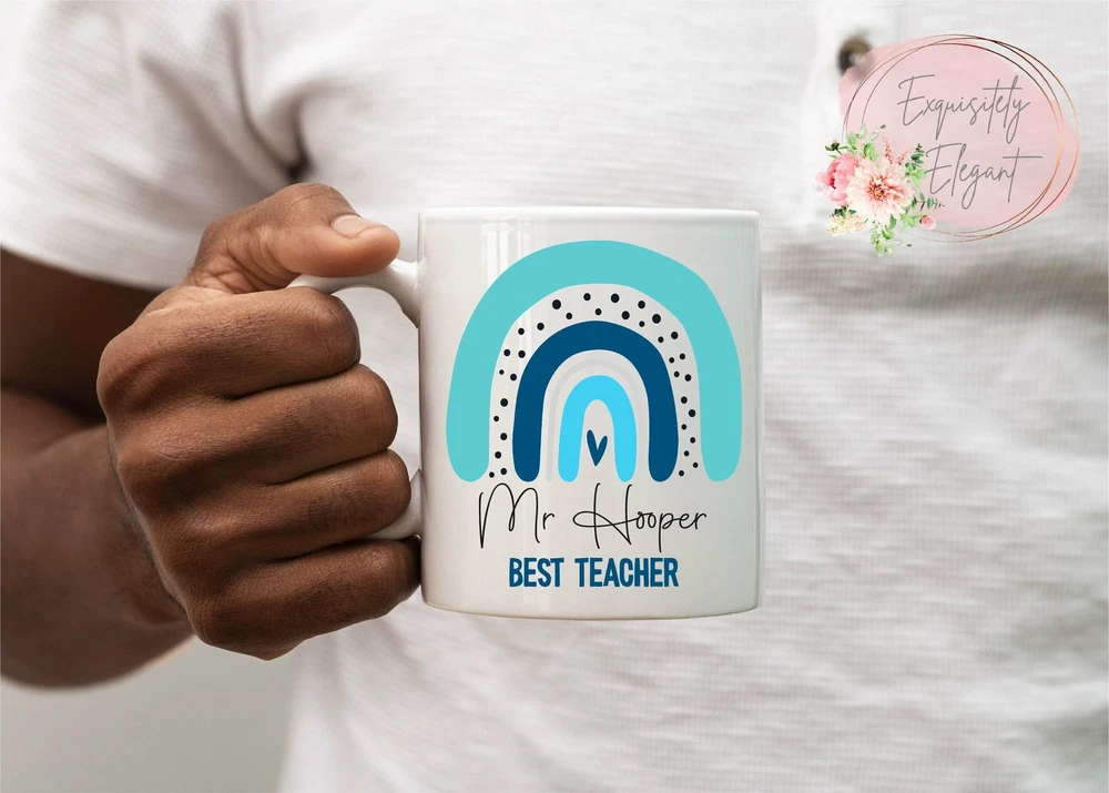 Personalised Blue Rainbow Teacher Mug Teacher Mug Teacher Cup Teacher Gift Thank Product Details.. This high quality 11oz. ceramic white mug has a premium hard coat that provides crisp and vibrant color reproduction sure to last for years. Perfect for all hot & cold beverages. The highest quality printing possible is used. It will never fade no matter how many times you wash it. Material: 100% Ceramic. Print both sides. Dishwasher and Microwave Safe. High Gloss + Premium White Finish. Printed in the U.S.A. Personalized & Custom. We support personalized and custom mug to add custom, when placing an order, you can add notes to the "order note" in shipping address section. Also you can contact us directly via message. Shipping Info. Ready to ship in 1 to 2 business days, All products are made-to-order and proudly printed in the United States. Shipped by USPS and DHL, You will receive your order in 5-7 days. Replace & Refund. All products are defective during shipping broken, chipped will be replaced free of charge. You are not satisfied with the product, we will refund 100% money to you. If any other issues arise, please do not hesitate to message, we would be more than happy to assist you.