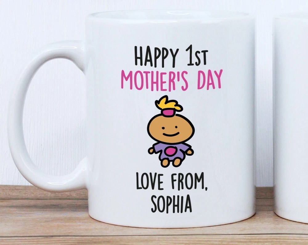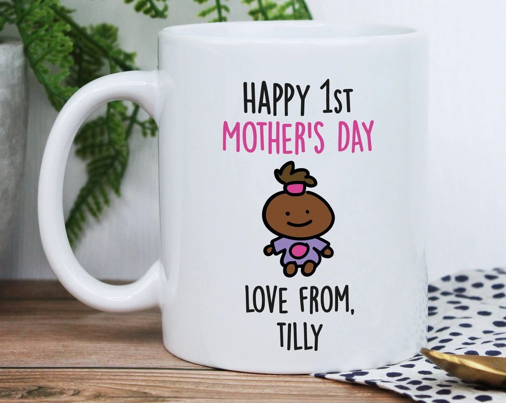Personalised First Mothers Day Mug Happy 1st Mothers Day Gift Mum Mummy Family Product Details.. This high quality 11oz. ceramic white mug has a premium hard coat that provides crisp and vibrant color reproduction sure to last for years. Perfect for all hot & cold beverages. The highest quality printing possible is used. It will never fade no matter how many times you wash it. Material: 100% Ceramic. Print both sides. Dishwasher and Microwave Safe. High Gloss + Premium White Finish. Printed in the U.S.A. Personalized & Custom. We support personalized and custom mug to add custom, when placing an order, you can add notes to the "order note" in shipping address section. Also you can contact us directly via message. Shipping Info. Ready to ship in 1 to 2 business days, All products are made-to-order and proudly printed in the United States. Shipped by USPS and DHL, You will receive your order in 5-7 days. Replace & Refund. All products are defective during shipping broken, chipped will be replaced free of charge. You are not satisfied with the product, we will refund 100% money to you. If any other issues arise, please do not hesitate to message, we would be more than happy to assist you.
