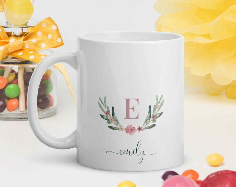 Personalizable Bride Bridesmaid Wedding Newlyweds Engaged Just Married Friend Mug Initial With Flowers Name Cup Engagement Gift Product Details.. This high quality 11oz. ceramic white mug has a premium hard coat that provides crisp and vibrant color reproduction sure to last for years. Perfect for all hot & cold beverages. The highest quality printing possible is used. It will never fade no matter how many times you wash it. Material: 100% Ceramic. Print both sides. Dishwasher and Microwave Safe. High Gloss + Premium White Finish. Printed in the U.S.A. Personalized & Custom. We support personalized and custom mug to add custom, when placing an order, you can add notes to the "order note" in shipping address section. Also you can contact us directly via message. Shipping Info. Ready to ship in 1 to 2 business days, All products are made-to-order and proudly printed in the United States. Shipped by USPS and DHL, You will receive your order in 5-7 days. Replace & Refund. All products are defective during shipping broken, chipped will be replaced free of charge. You are not satisfied with the product, we will refund 100% money to you. If any other issues arise, please do not hesitate to message, we would be more than happy to assist you.