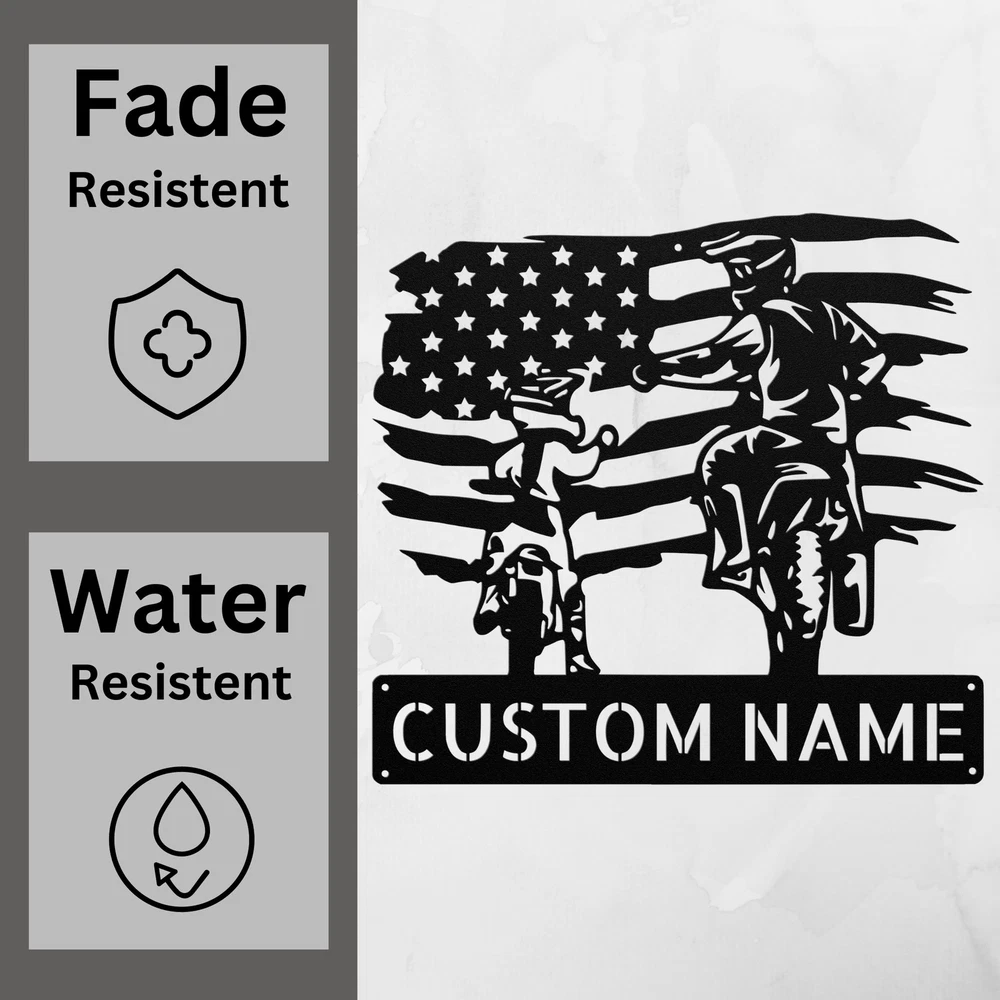 Product Description Personalized American Motocross Metal Sign Custom Decor Gift for Riders and Fans Rev up your space with our Personalized American Motocross Metal Sign ! This striking sign is perfect for motocross lovers and adds a unique touch to any room, garage, or outdoor area. Crafted from 16 gauge high-quality metal , this sign is designed to withstand the elements. With its powder coating , it’s dust, weather, and water resistant, ensuring it looks great for years to come. Key features include: Customizable Design: Personalize it with a name or special message to make it truly yours. Durable and Reliable: Made to last, this sign is perfect for both indoor and outdoor use. Great Gift Idea: A fantastic present for Christmas, birthdays, or any special occasion for motocross enthusiasts. Versatile Decoration: Ideal for your home, office, or as a unique addition to your garage. Show off your passion for motocross with the Personalized American Motocross Metal Sign . Order yours today and bring your love for riding to life! Service and Color Choice Our metal signs are designed to be personalized just for you, making them the perfect addition to any space! The default color for our signs is Black , but we also offer a variety of beautiful options including Copper, Gold, White, and Silver . After placing your order, simply contact us with your preferred color choice, and we'll ensure your sign is exactly how you envision it. Let’s create something special together!