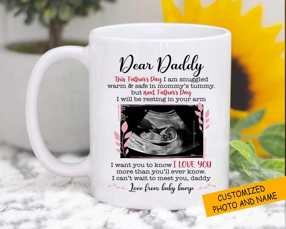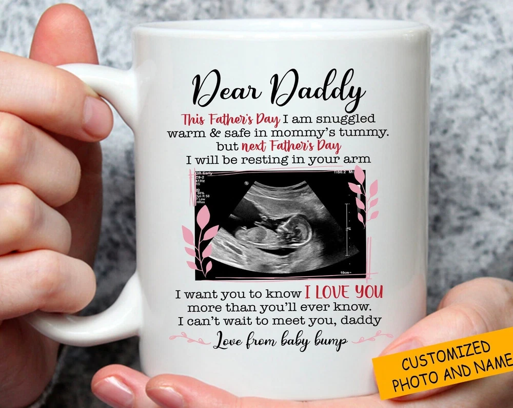 Personalized Baby Announcement Mug Ultrasound Custom Mug Fathers Day Gift To Be Product Details.. This high quality 11oz. ceramic white mug has a premium hard coat that provides crisp and vibrant color reproduction sure to last for years. Perfect for all hot & cold beverages. The highest quality printing possible is used. It will never fade no matter how many times you wash it. Material: 100% Ceramic. Print both sides. Dishwasher and Microwave Safe. High Gloss + Premium White Finish. Printed in the U.S.A. Personalized & Custom. We support personalized and custom mug to add custom, when placing an order, you can add notes to the "order note" in shipping address section. Also you can contact us directly via message. Shipping Info. Ready to ship in 1 to 2 business days, All products are made-to-order and proudly printed in the United States. Shipped by USPS and DHL, You will receive your order in 5-7 days. Replace & Refund. All products are defective during shipping broken, chipped will be replaced free of charge. You are not satisfied with the product, we will refund 100% money to you. If any other issues arise, please do not hesitate to message, we would be more than happy to assist you.