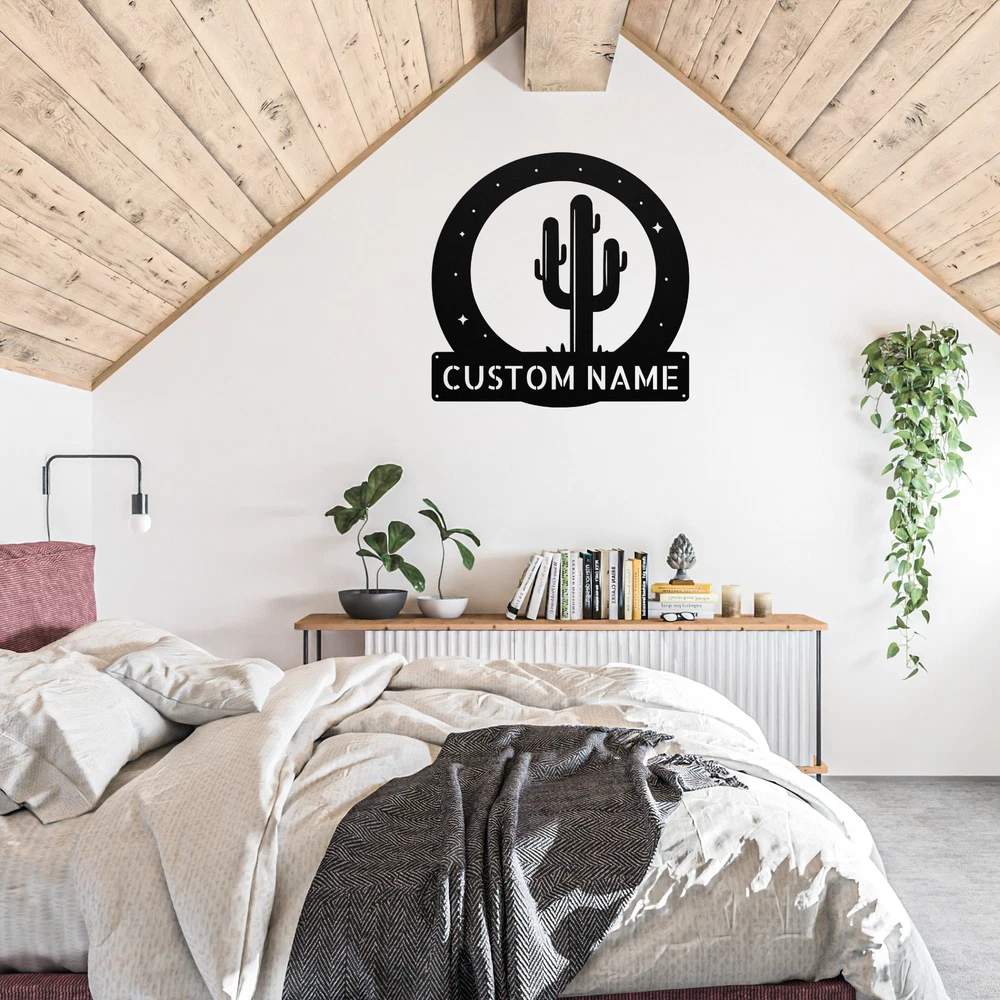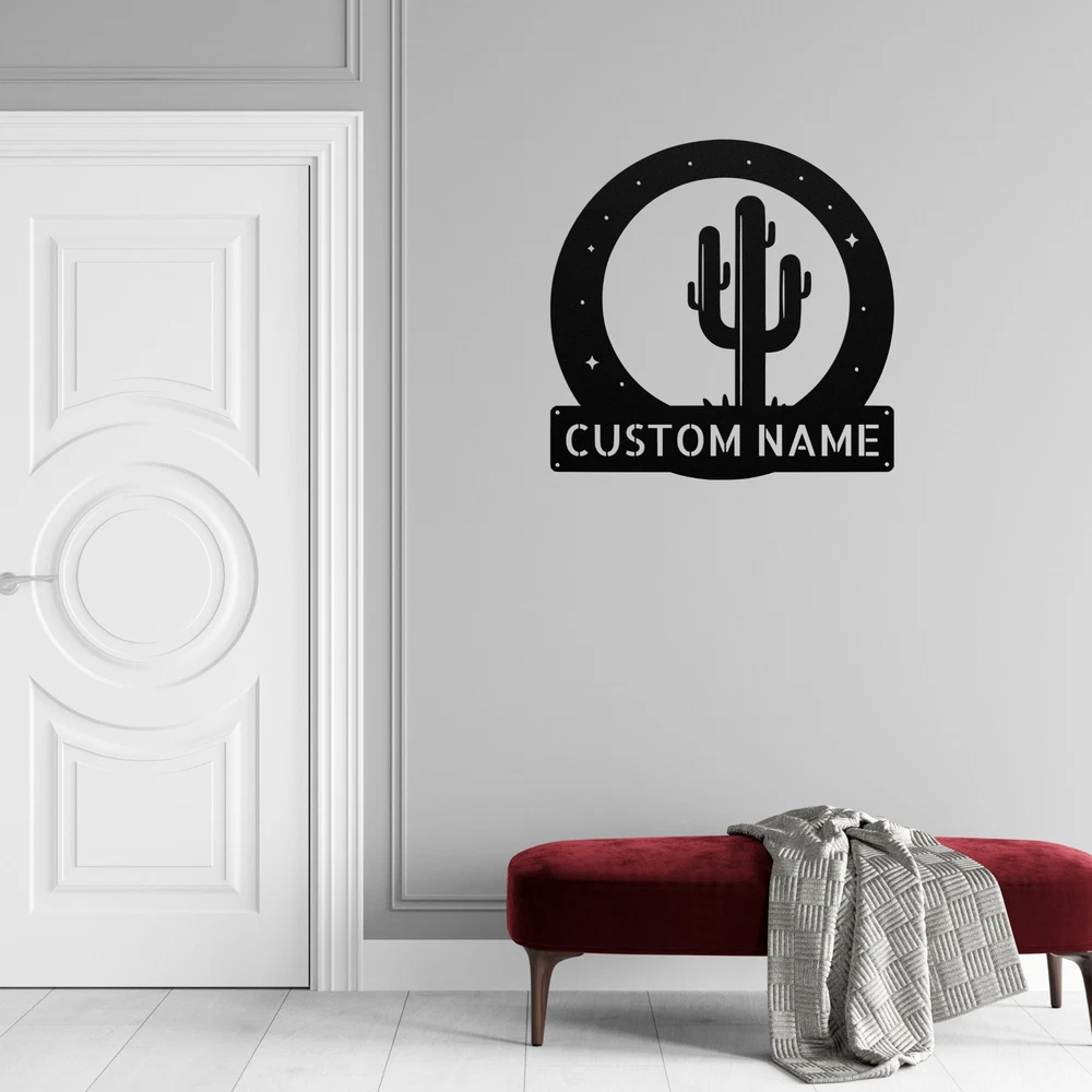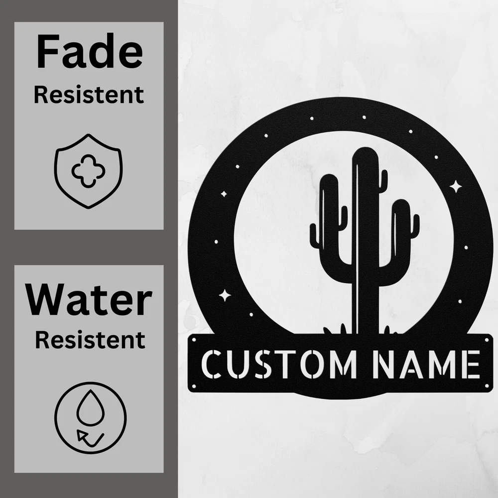 Product Description Personalized Cactus Metal Sign Custom Home Decor Gift for Plant Lovers Brighten up your space with our Personalized Cactus Metal Sign . This charming sign is perfect for anyone who loves cacti and wants to add a touch of the desert to their home or office. Made from 16 gauge high-quality metal , this sign features a durable powder coating that ensures it is dust, weather, and water-resistant. This means it can be displayed both indoors and outdoors without any worries. Key features include: Customizable Design: Add your name or a special message to make it uniquely yours. Durable Construction: Built to last and withstand various weather conditions. Great Gift Idea: Perfect for Christmas, birthdays, or any special occasion for plant enthusiasts. Versatile Decoration: Ideal for your home, office, or garden to showcase your love for cacti. Transform your decor with the Personalized Cactus Metal Sign and celebrate your passion for these beautiful plants! Service and Color Choice Our metal signs are designed to be personalized just for you, making them the perfect addition to any space! The default color for our signs is Black , but we also offer a variety of beautiful options including Copper, Gold, White, and Silver . After placing your order, simply contact us with your preferred color choice, and we'll ensure your sign is exactly how you envision it. Let’s create something special together!