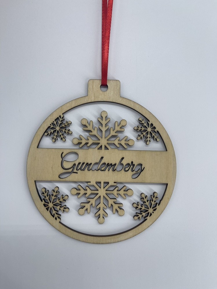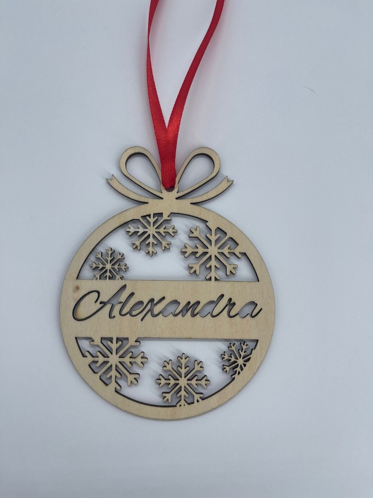 Personalized Birch Wood Christmas Ornament - Custom Name - Handmade Holiday Decoration - Small Business Craft Description : Add a personal and elegant touch to your Christmas tree with this handmade personalized birch wood ornament ! Designed with precision using an xTool laser engraver, this ornament is perfect for celebrating the holidays in a meaningful and memorable way. Whether it’s a gift for loved ones or a special addition to your own tree, this ornament is a beautiful keepsake that will last for years. Features: • Personalized with Any Name : Custom engraved with the name of your choice for a truly unique ornament. • Premium Birch Wood : Made from natural 4-inch birch wood for a lightweight yet durable design. • Handmade with Care : Carefully crafted by a small business with attention to detail using professional-grade tools. • Festive Snowflake Design : Features intricate snowflakes and a beautiful red ribbon for hanging. • Eco-Friendly and Sustainable : Made with responsibly sourced birch wood. Product Details: • Size : 4 inches in diameter • Material : Natural birch wood • Includes : A red ribbon for easy hanging • Shipping : Ships within 5 business days of placing your order • Packaging : Securely packaged to ensure your ornament arrives in perfect condition Why Choose Us? • Support a Small Business : Each purchase supports our family-run shop and helps us continue creating unique, handmade products. • Craftsmanship You Can Trust : Our ornaments are made with precision and inspected for quality to ensure you receive the best. • Fast Turnaround : Personalized and shipped within just 5 business days—perfect for last-minute holiday shopping! Thank you Alex