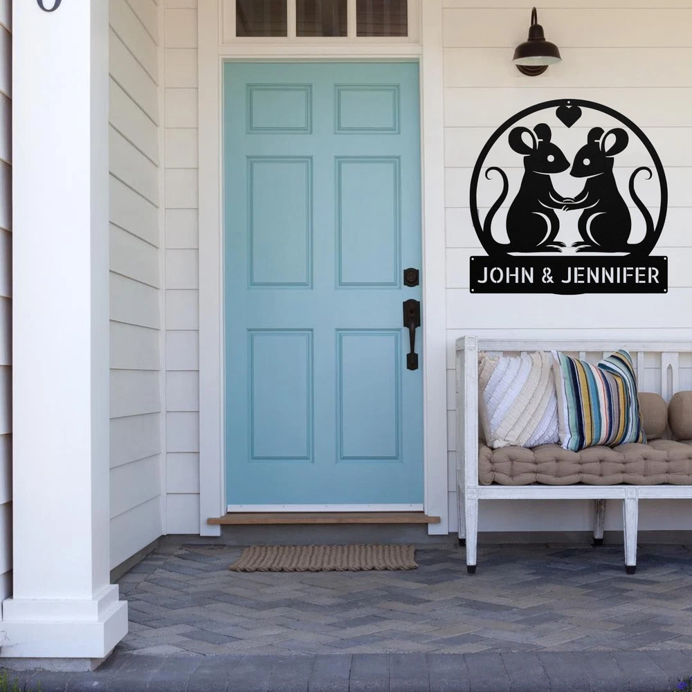 Product Description Personalized Couple Mouse Metal Sign Custom Wall Art Decor Gift for Mouse Lovers Add a whimsical touch to your decor with our Personalized Couple Mouse Metal Sign ! This custom wall art decor is perfect for mouse lovers, making it a delightful addition to your home, office, or outdoor space. Made from high-quality 16-gauge metal, this sign features a durable powder coating that protects it from dust, weather, and water, ensuring it stays looking great both indoors and outdoors. Searching for a unique gift? This personalized metal sign is an excellent choice for Christmas, birthdays, or any special occasion. It’s a fun way to celebrate your love for these adorable creatures and brighten up any room. Key Features: Customizable Design : Personalize the sign with names or a special message. Durable Material : Crafted from 16-gauge high-quality metal for long-lasting beauty. Weather-Resistant : Powder-coated finish protects against dust, rain, and rust. Versatile Decor : Ideal for both indoor and outdoor display. Great Gift Idea : A thoughtful present for any mouse enthusiast. Show off your love for mice or surprise a fellow fan with this charming metal sign. Order yours today and add a personal touch to your decor! Service and Color Choice Our metal signs are designed to be personalized just for you, making them the perfect addition to any space! The default color for our signs is Black , but we also offer a variety of beautiful options including Copper, Gold, White, and Silver . After placing your order, simply contact us with your preferred color choice, and we'll ensure your sign is exactly how you envision it. Let’s create something special together!