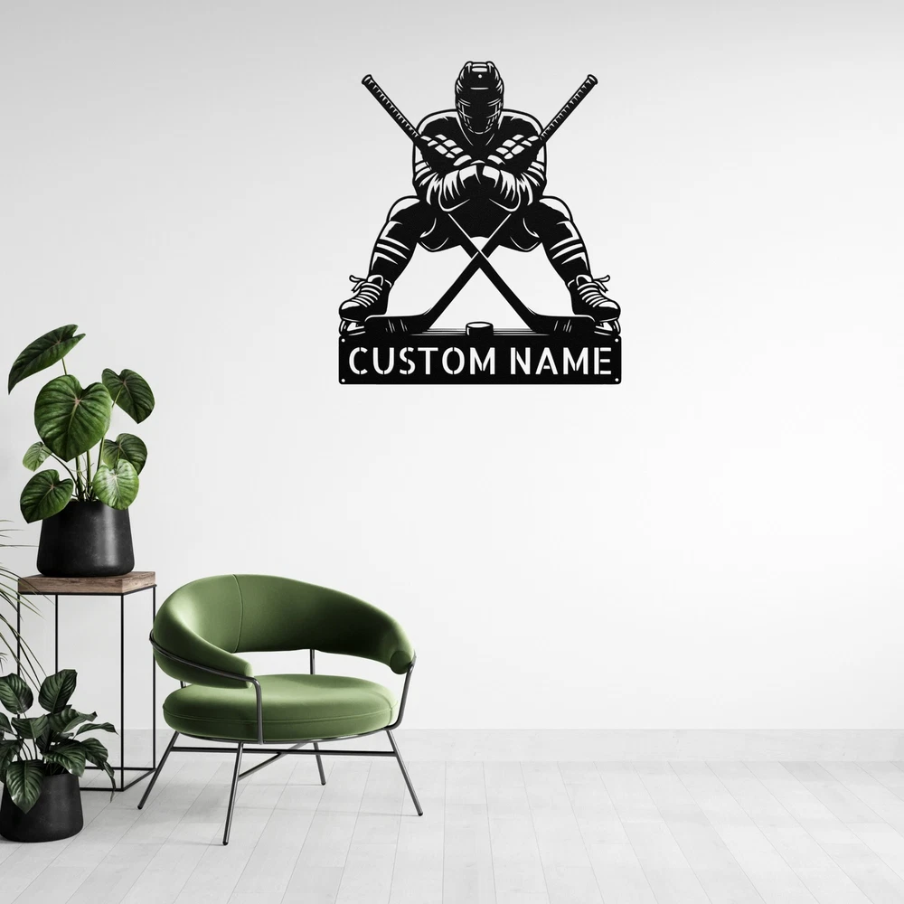 Product Description Personalized Crossed Hockey Metal Sign Custom Hockey Decor Gift for Sports Fans Show off your love for hockey with our Personalized Crossed Hockey Metal Sign ! This sign is a perfect addition to any home, office, or sports room, making it a must-have for hockey fans of all ages. Crafted from 16 gauge high-quality metal , this sign is designed to last. The powder coating makes it dust, weather, and water-resistant , ensuring it looks great indoors or outdoors. Key features include: Customizable Design: Add your name or favorite team to make it truly yours. Durable and Long-Lasting: Built to withstand the elements while maintaining its vibrant look. Perfect Gift Idea: An excellent choice for Christmas, birthdays, or any special occasion for hockey lovers. Stylish Decor: A fantastic way to enhance your game room, man cave, or office with a sporty touch. Celebrate your passion for hockey with the Personalized Crossed Hockey Metal Sign . It’s more than just a sign; it’s a statement of your love for the game! Service and Color Choice Our metal signs are designed to be personalized just for you, making them the perfect addition to any space! The default color for our signs is Black , but we also offer a variety of beautiful options including Copper, Gold, White, and Silver . After placing your order, simply contact us with your preferred color choice, and we'll ensure your sign is exactly how you envision it. Let’s create something special together!