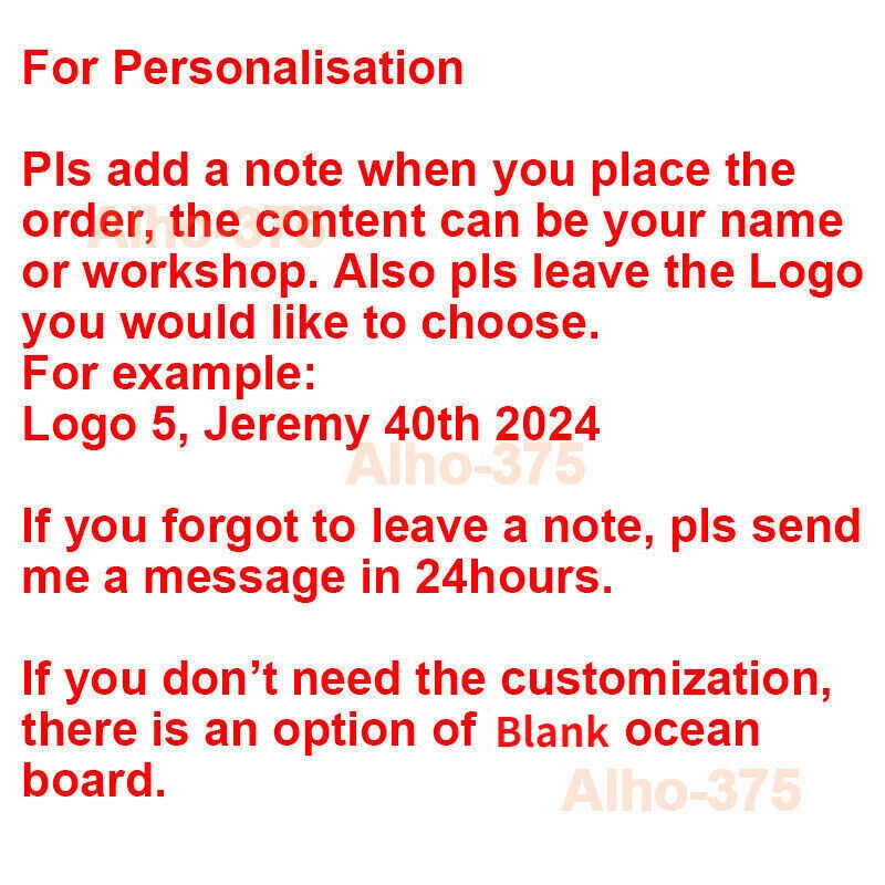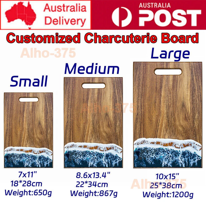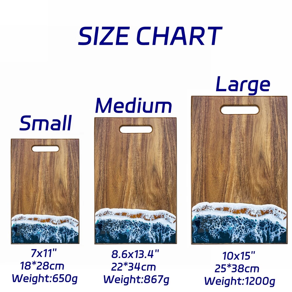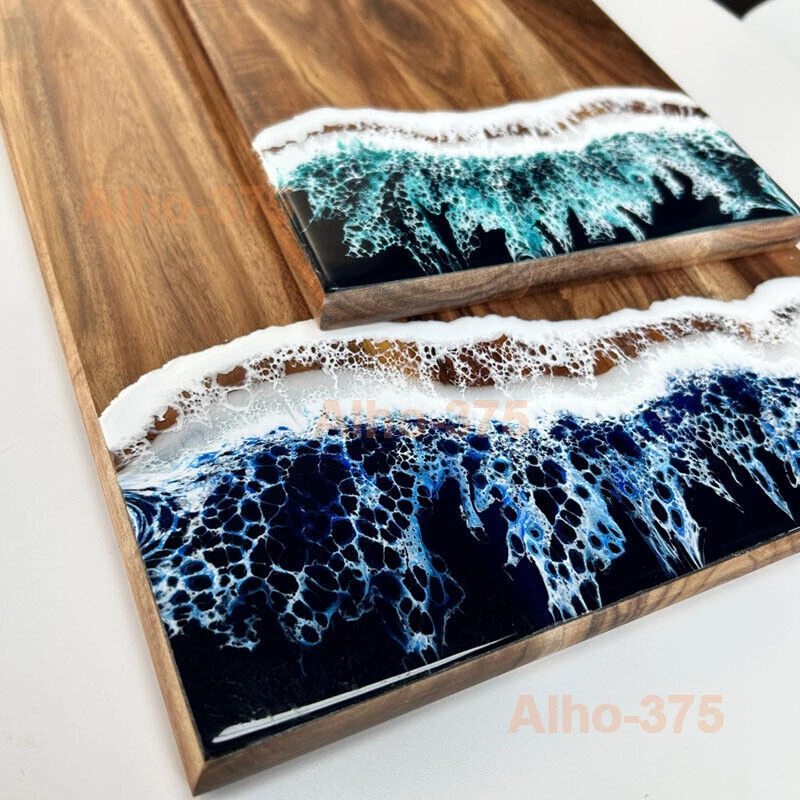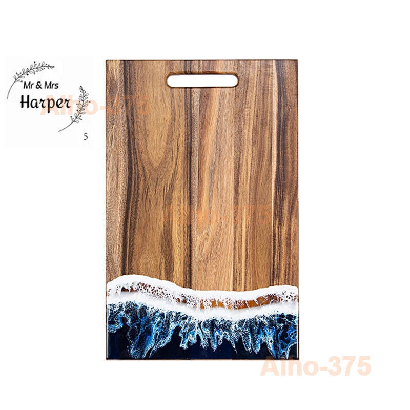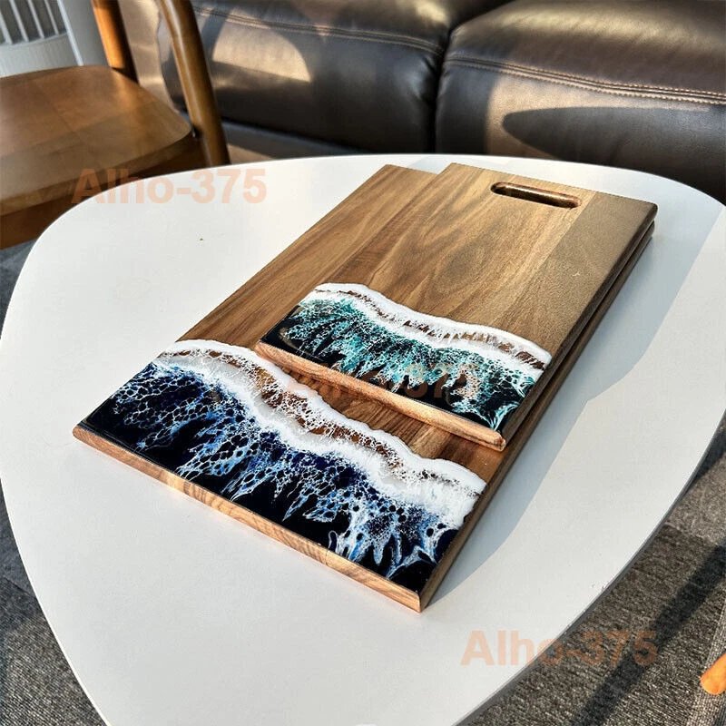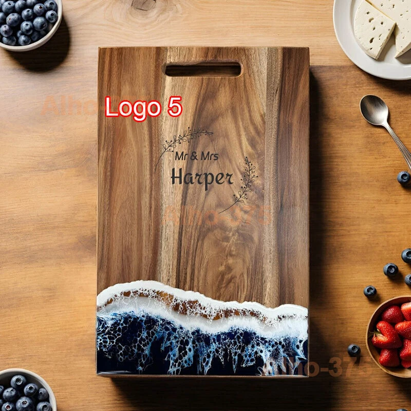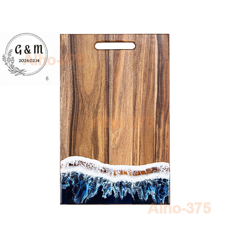 Personalized Charcuterie Boa rd Ocean Resin Customized Chopping and Cutting Board Our charcuterie board is unique and personalized,decor your kitchen or to be a wonderful gift. We offer laser engraving customization services, allowing you to create a one-of-a-kind design on the board. The board is made from high-quality MAS epoxy resin, which meets food safety standards in the United States. It is certified non-toxic and safe for incidental food contact, providing peace of mind when using it for serving cheeses and other food items. The resin used in our charcuterie board is skillfully crafted to create a stunning 3D ocean wave effect, adding a touch of elegance and sophistication to your table setting. Each board is meticulously handmade, ensuring attention to detail and a high-quality finished product. Package: 1x Charcut erie Boa rd In Box Important note FOR CUSTOMIZATION: Pls add a note when you place the order, the content can be your name or workshop. Also pls leave the Logo you would like to choose. For example: Logo 5, Jeremy 40th 2024 If you forget to add a note, pls send me a message about the content in 24hours. If you don’t need a custom, there is option of blank oceanboard. Please note that due to manual craftsmanship and the fluidity of resin, the patterns on each charcuterie board are unique and may have slight imperfections. Thank you for your understanding.