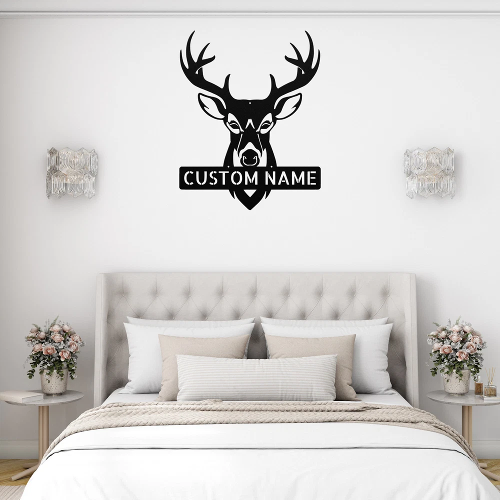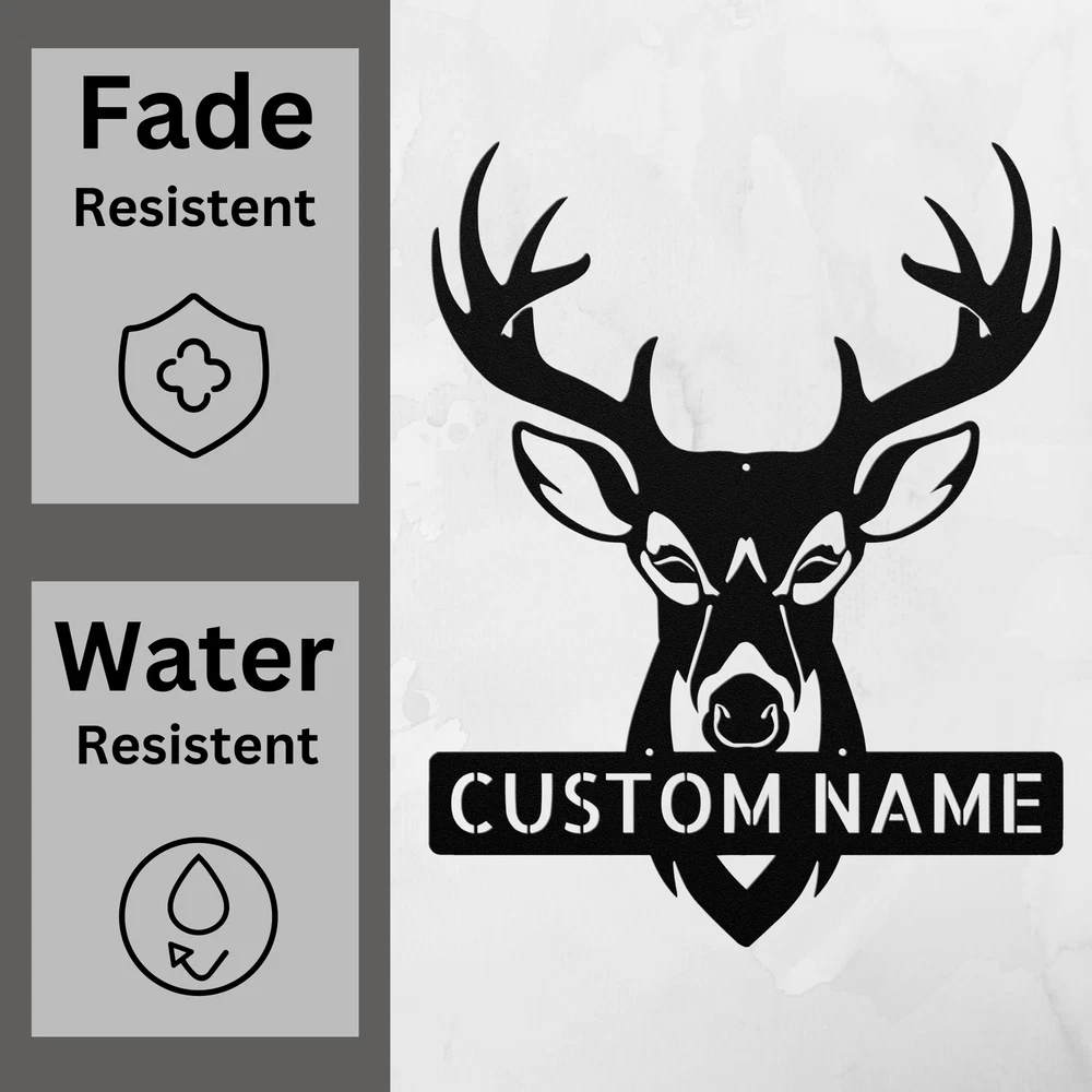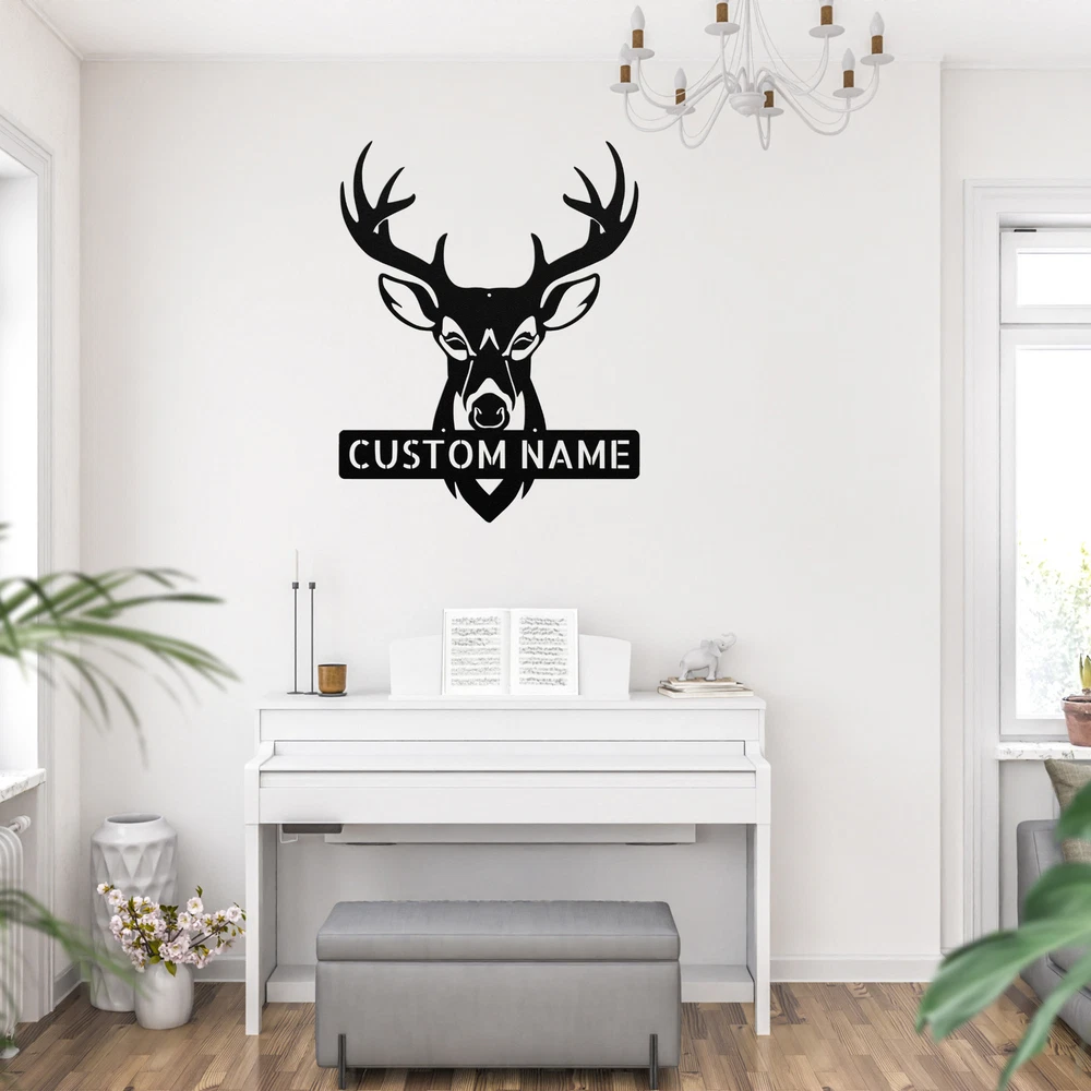 Product Description Personalized Deer Antler Head Metal Sign Custom Home Decor Hunter Gift Ideas Enhance your space with our stunning Personalized Deer Antler Head Metal Sign ! Perfect for nature lovers and outdoor enthusiasts, this sign adds a rustic charm to any home or office decor. Crafted from 16 gauge high-quality metal , this sign is durable and designed to last. The powder coating makes it dust, weather, and water-resistant, ensuring it looks great in any setting, indoors or outdoors. Key features include: Customizable Design: Personalize it with names or a special message for a unique touch. Sturdy Material: Made from robust metal for long-lasting use and visual appeal. Versatile Decor: Perfect as a gift for Christmas, birthdays, or any special occasion, or keep it for yourself! Rustic Elegance: The deer antler design brings a touch of the wild into your space. Celebrate your love for the outdoors with the Personalized Deer Antler Head Metal Sign . It’s not just a decoration; it’s a statement piece that reflects your style and passion! Service and Color Choice Our metal signs are designed to be personalized just for you, making them the perfect addition to any space! The default color for our signs is Black , but we also offer a variety of beautiful options including Copper, Gold, White, and Silver . After placing your order, simply contact us with your preferred color choice, and we'll ensure your sign is exactly how you envision it. Let’s create something special together!