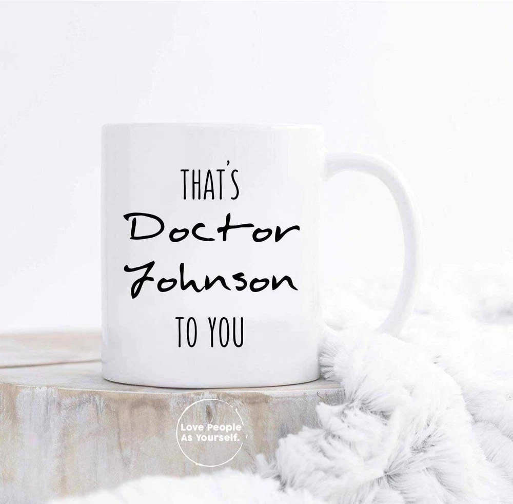 Personalized Doctor Gift Phd Graduation Gift Phd Mug Doctor Gifts For Her Him Product Details.. This high quality 11oz. ceramic white mug has a premium hard coat that provides crisp and vibrant color reproduction sure to last for years. Perfect for all hot & cold beverages. The highest quality printing possible is used. It will never fade no matter how many times you wash it. Material: 100% Ceramic. Print both sides. Dishwasher and Microwave Safe. High Gloss + Premium White Finish. Printed in the U.S.A. Personalized & Custom. We support personalized and custom mug to add custom, when placing an order, you can add notes to the "order note" in shipping address section. Also you can contact us directly via message. Shipping Info. Ready to ship in 1 to 2 business days, All products are made-to-order and proudly printed in the United States. Shipped by USPS and DHL, You will receive your order in 5-7 days. Replace & Refund. All products are defective during shipping broken, chipped will be replaced free of charge. You are not satisfied with the product, we will refund 100% money to you. If any other issues arise, please do not hesitate to message, we would be more than happy to assist you.