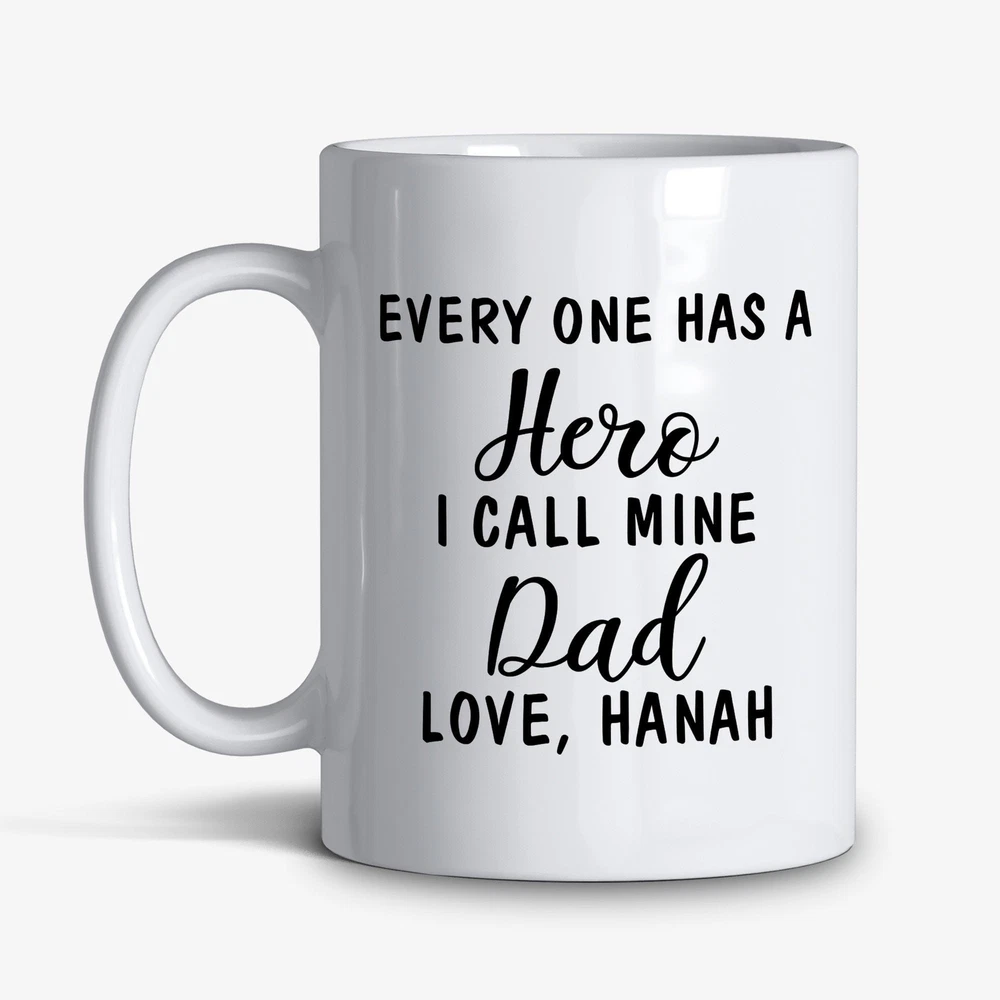 Personalized Every One Has A Hero I Call Mine Dad Love Father's Day Mugs Oxv1 Product Details.. This high quality 11oz. ceramic white mug has a premium hard coat that provides crisp and vibrant color reproduction sure to last for years. Perfect for all hot & cold beverages. The highest quality printing possible is used. It will never fade no matter how many times you wash it. Material: 100% Ceramic. Print both sides. Dishwasher and Microwave Safe. High Gloss + Premium White Finish. Printed in the U.S.A. Personalized & Custom. We support personalized and custom mug to add custom, when placing an order, you can add notes to the "order note" in shipping address section. Also you can contact us directly via message. Shipping Info. Ready to ship in 1 to 2 business days, All products are made-to-order and proudly printed in the United States. Shipped by USPS and DHL, You will receive your order in 5-7 days. Replace & Refund. All products are defective during shipping broken, chipped will be replaced free of charge. You are not satisfied with the product, we will refund 100% money to you. If any other issues arise, please do not hesitate to message, we would be more than happy to assist you.