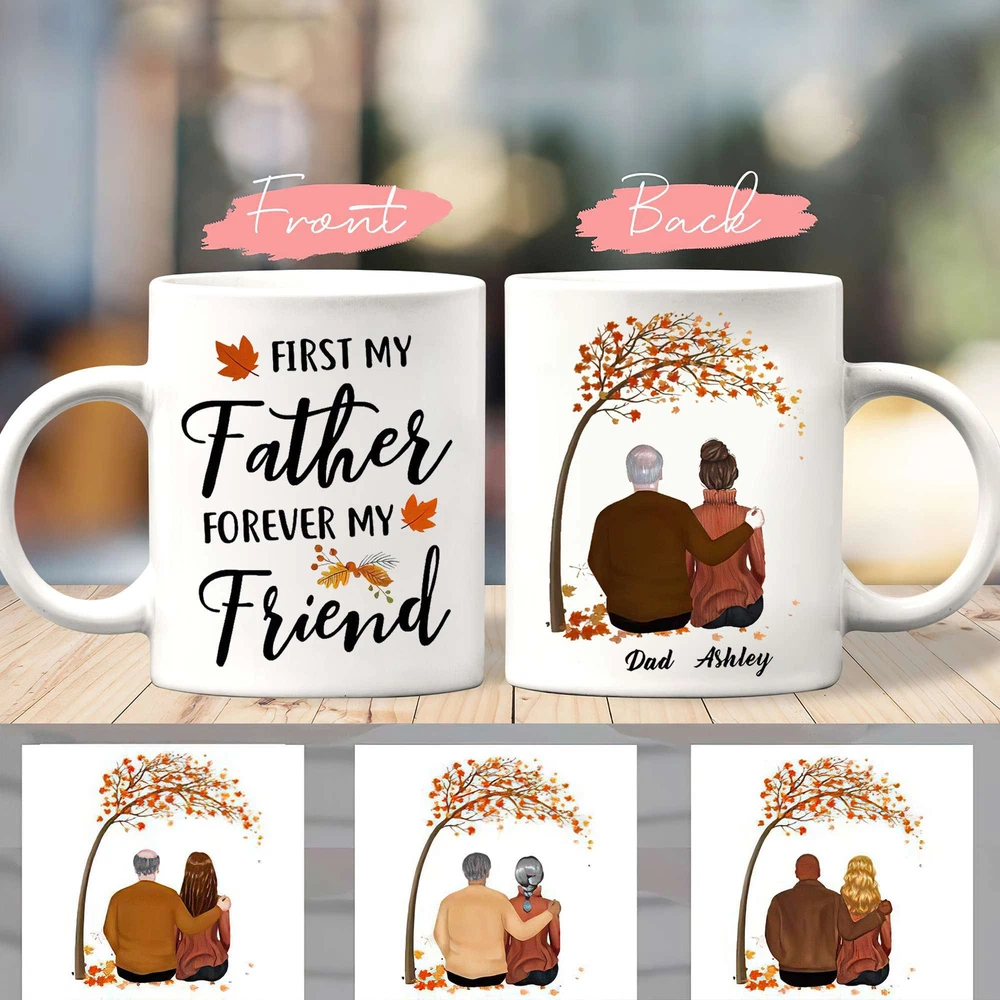 Personalized Father And Daughter Mug First My Father Forever My Friend Mug Gift Product Details.. This high quality 11oz. ceramic white mug has a premium hard coat that provides crisp and vibrant color reproduction sure to last for years. Perfect for all hot & cold beverages. The highest quality printing possible is used. It will never fade no matter how many times you wash it. Material: 100% Ceramic. Print both sides. Dishwasher and Microwave Safe. High Gloss + Premium White Finish. Printed in the U.S.A. Personalized & Custom. We support personalized and custom mug to add custom, when placing an order, you can add notes to the "order note" in shipping address section. Also you can contact us directly via message. Shipping Info. Ready to ship in 1 to 2 business days, All products are made-to-order and proudly printed in the United States. Shipped by USPS and DHL, You will receive your order in 5-7 days. Replace & Refund. All products are defective during shipping broken, chipped will be replaced free of charge. You are not satisfied with the product, we will refund 100% money to you. If any other issues arise, please do not hesitate to message, we would be more than happy to assist you.
