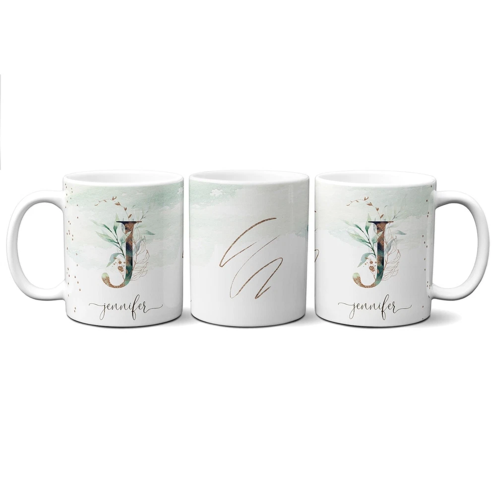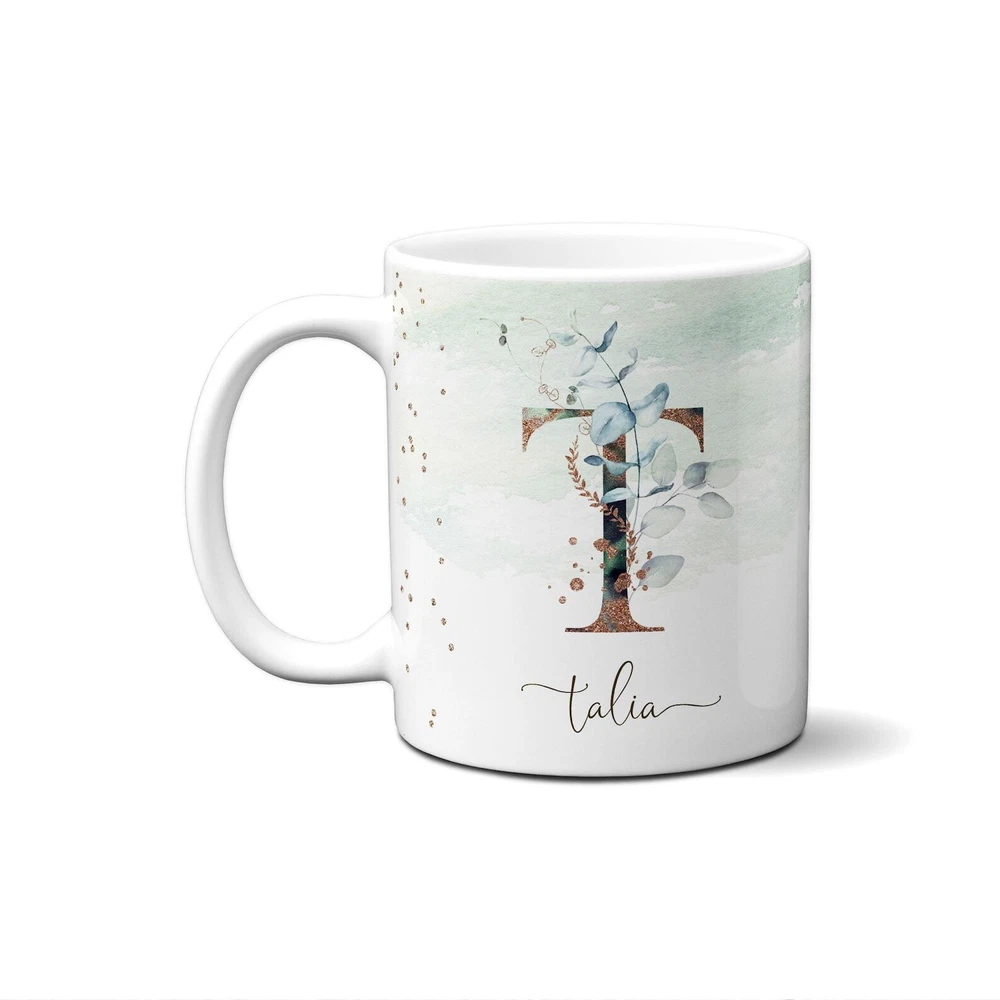 $ 10.0Eucalyptus Monogram Letter Mug Initial Alphabet Cup Birthday & Appreciation