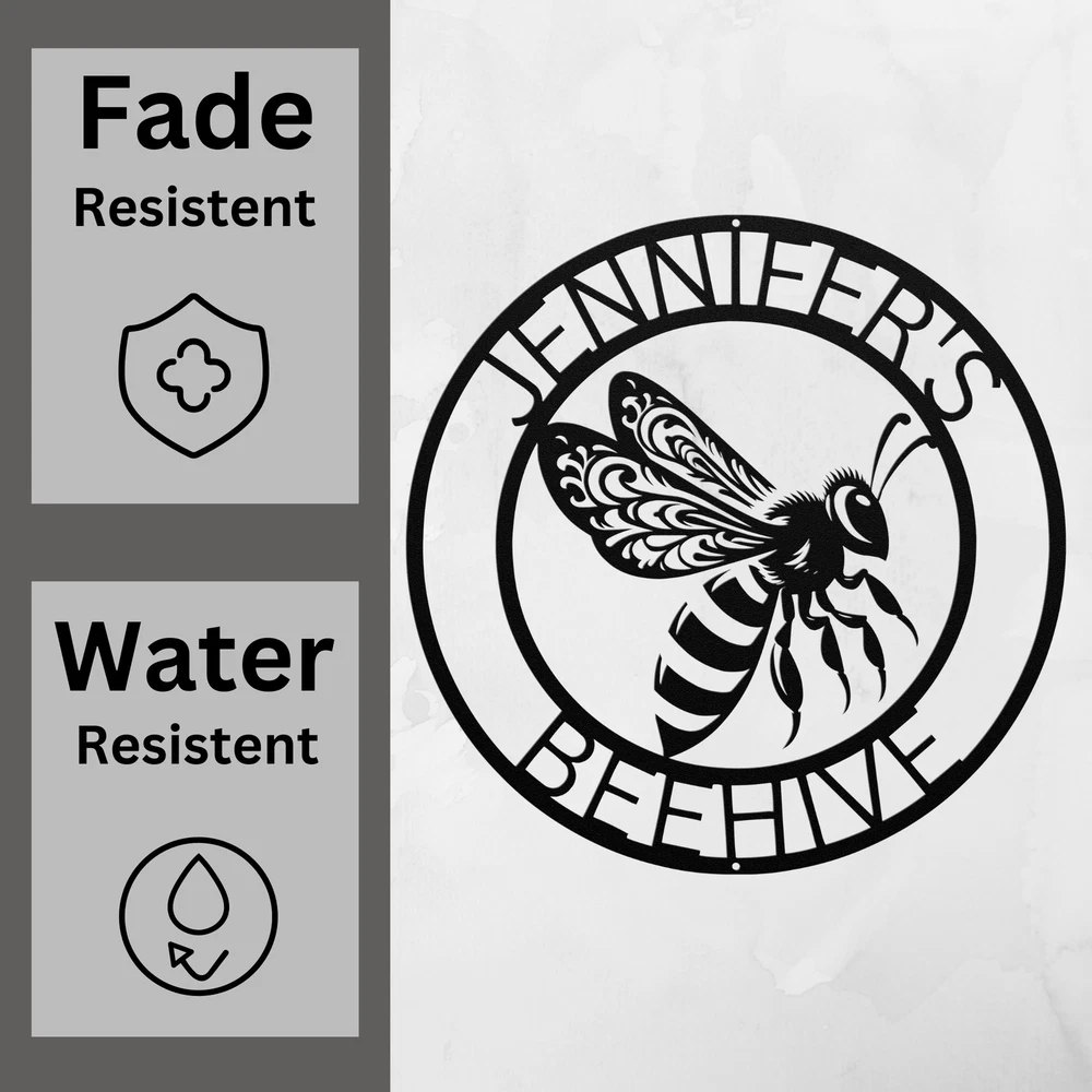 Product Description Personalized Flying Bee Metal Sign Custom Garden Decor Unique Gift for Bee Lover Add a touch of charm to your space with our Personalized Flying Bee Metal Sign . This delightful sign is perfect for nature lovers and makes a beautiful addition to any garden or home decor. Made from 16 gauge high-quality metal , this sign is built to last. The powder coating makes it dust, weather, and water resistant, ensuring it remains vibrant and beautiful in any condition. Key features include: Customizable Design: Personalize your sign with a name or special message. Durable and Long-lasting: Crafted to withstand the elements while maintaining its stunning appearance. Perfect Gift Idea: An ideal gift for Christmas, birthdays, or any special occasion for bee enthusiasts. Versatile Decoration: Great for indoor or outdoor spaces, bringing a unique touch to your home or garden. Celebrate the beauty of nature with the Personalized Flying Bee Metal Sign . Order yours today to add a personal touch to your decor! Service and Color Choice Our metal signs are designed to be personalized just for you, making them the perfect addition to any space! The default color for our signs is Black , but we also offer a variety of beautiful options including Copper, Gold, White, and Silver . After placing your order, simply contact us with your preferred color choice, and we'll ensure your sign is exactly how you envision it. Let’s create something special together!