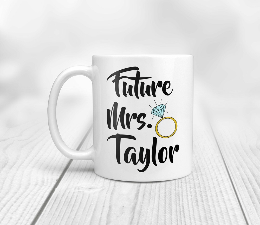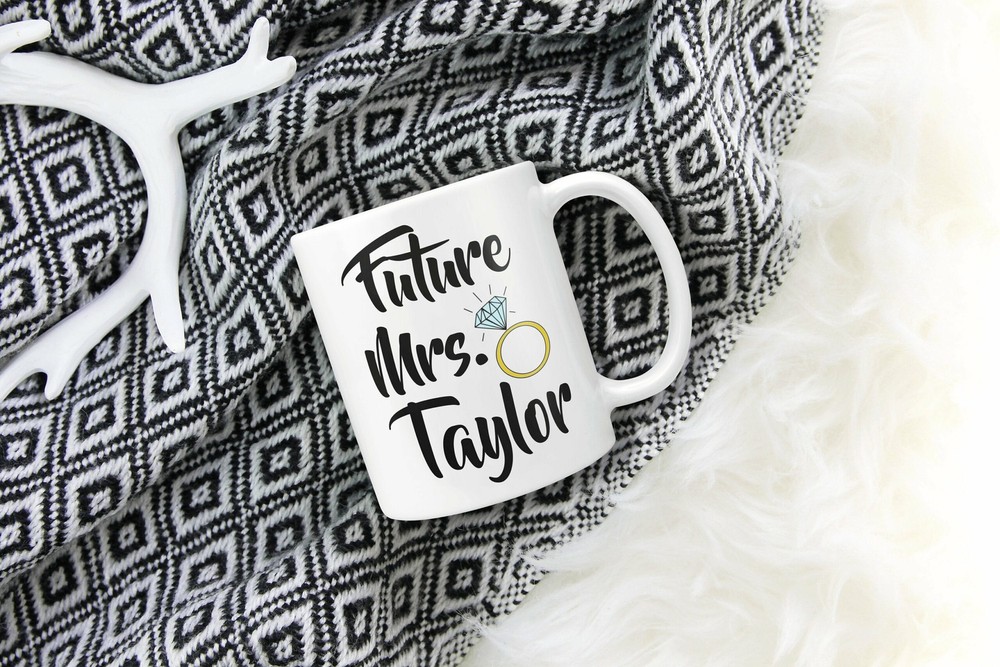 Future Mrs Mug Personalized Future Mrs Mug Giftbride Mug Engagement Gift Mug Product Details.. This high quality 11oz. ceramic white mug has a premium hard coat that provides crisp and vibrant color reproduction sure to last for years. Perfect for all hot & cold beverages. The highest quality printing possible is used. It will never fade no matter how many times you wash it. Material: 100% Ceramic. Print both sides. Dishwasher and Microwave Safe. High Gloss + Premium White Finish. Printed in the U.S.A. Personalized & Custom. We support personalized and custom mug to add custom, when placing an order, you can add notes to the "order note" in shipping address section. Also you can contact us directly via message. Shipping Info. Ready to ship in 1 to 2 business days, All products are made-to-order and proudly printed in the United States. Shipped by USPS and DHL, You will receive your order in 5-7 days. Replace & Refund. All products are defective during shipping broken, chipped will be replaced free of charge. You are not satisfied with the product, we will refund 100% money to you. If any other issues arise, please do not hesitate to message, we would be more than happy to assist you.