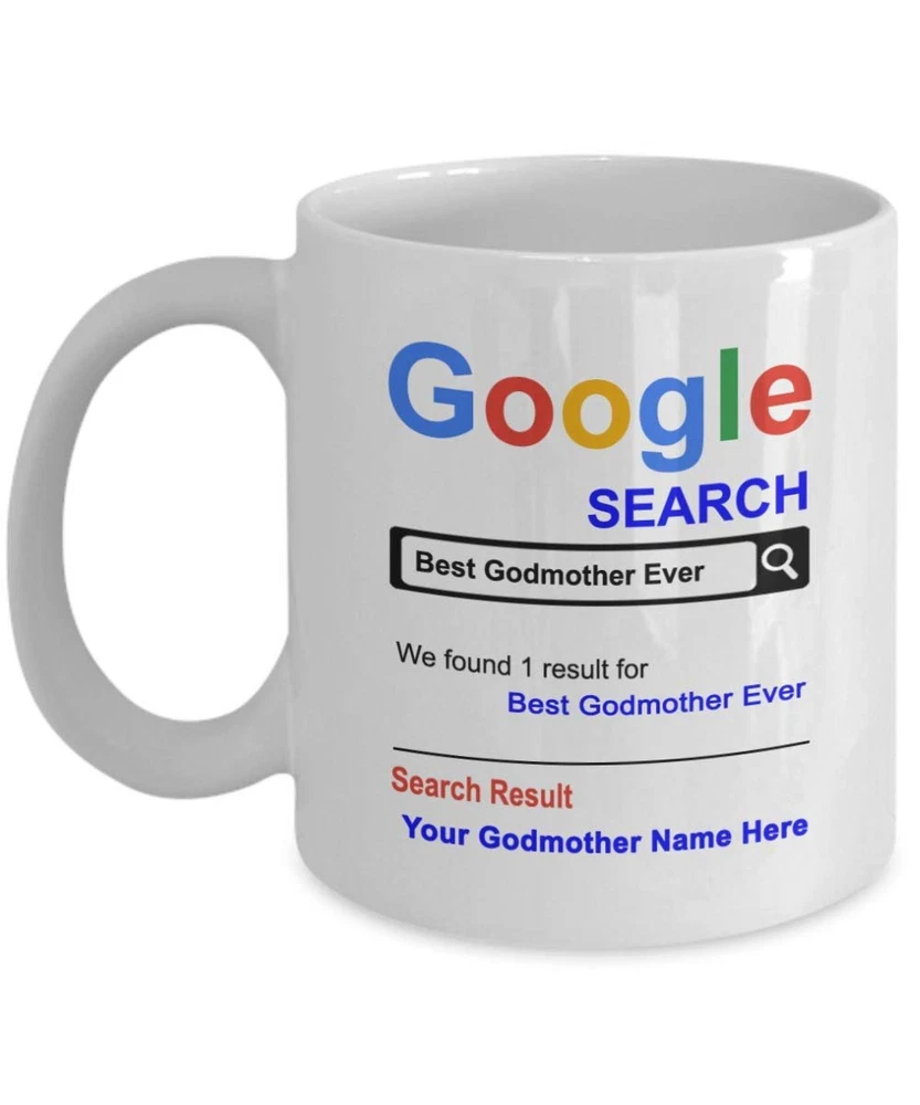 Personalized Godmother Mug Best Godmother Ever Coffee Cup Customaized Name Product Details.. This high quality 11oz. ceramic white mug has a premium hard coat that provides crisp and vibrant color reproduction sure to last for years. Perfect for all hot & cold beverages. The highest quality printing possible is used. It will never fade no matter how many times you wash it. Material: 100% Ceramic. Print both sides. Dishwasher and Microwave Safe. High Gloss + Premium White Finish. Printed in the U.S.A. Personalized & Custom. We support personalized and custom mug to add custom, when placing an order, you can add notes to the "order note" in shipping address section. Also you can contact us directly via message. Shipping Info. Ready to ship in 1 to 2 business days, All products are made-to-order and proudly printed in the United States. Shipped by USPS and DHL, You will receive your order in 5-7 days. Replace & Refund. All products are defective during shipping broken, chipped will be replaced free of charge. You are not satisfied with the product, we will refund 100% money to you. If any other issues arise, please do not hesitate to message, we would be more than happy to assist you.